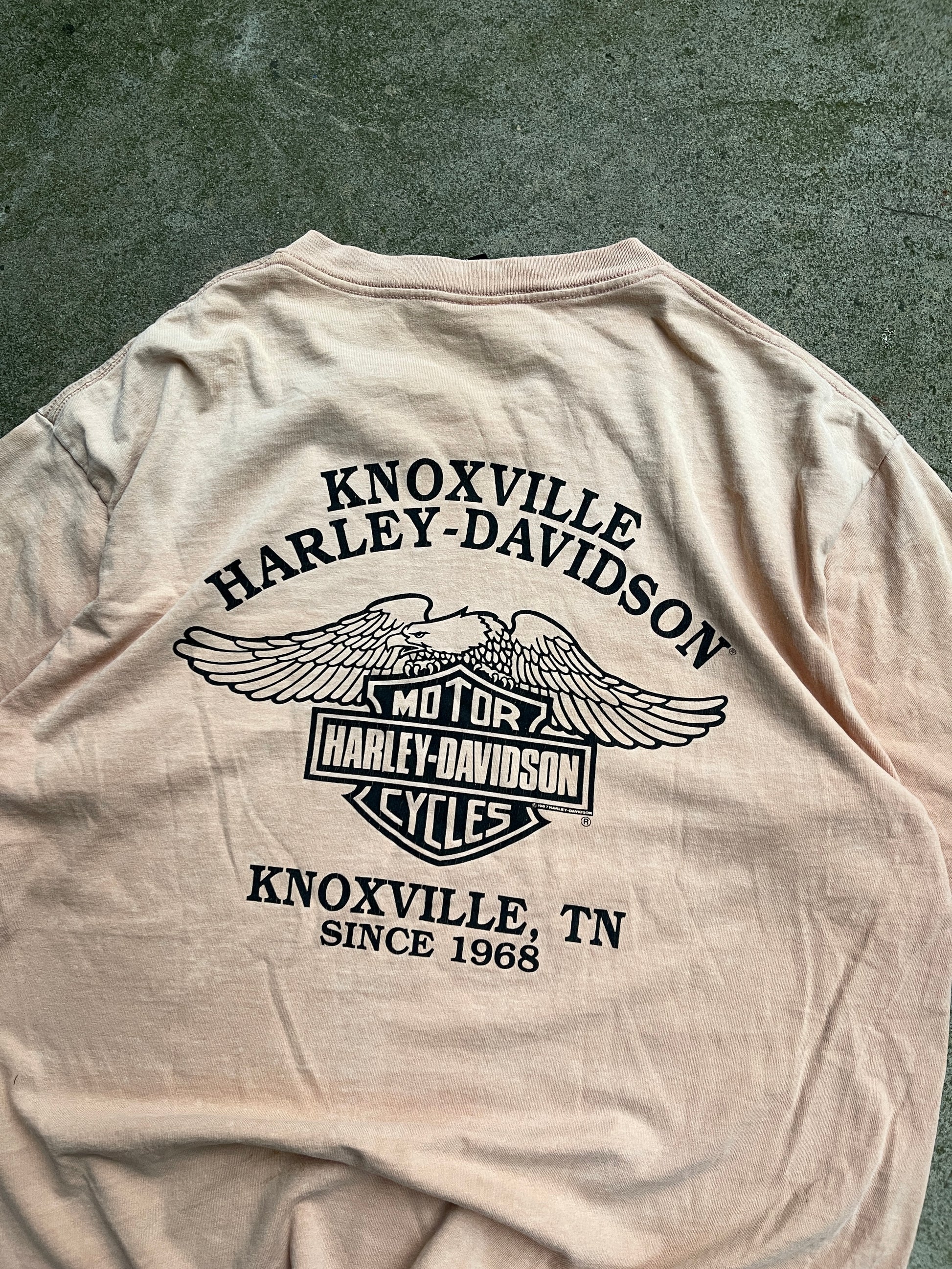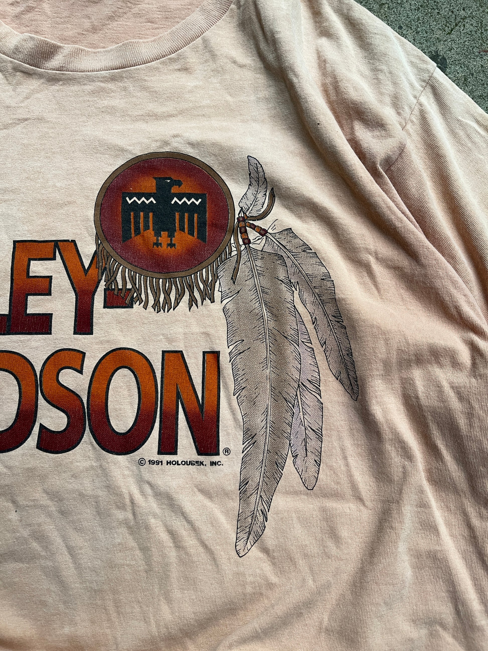 1990s HARLEY DAVIDSON TAN TRIBAL LOGO TEE