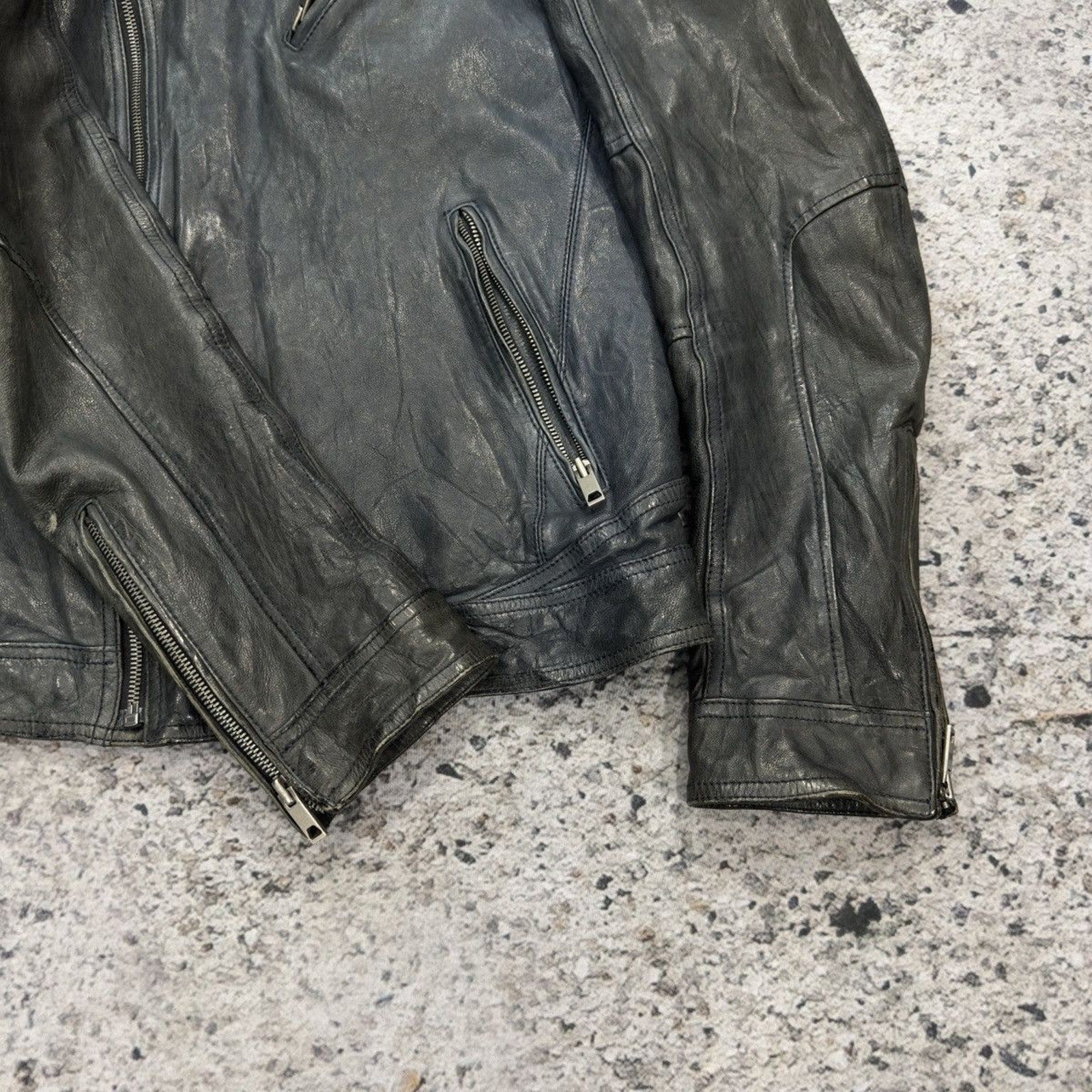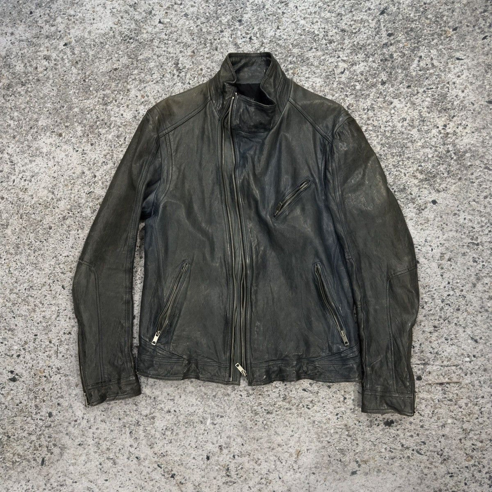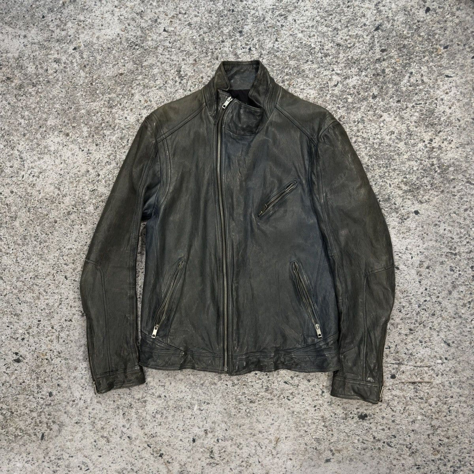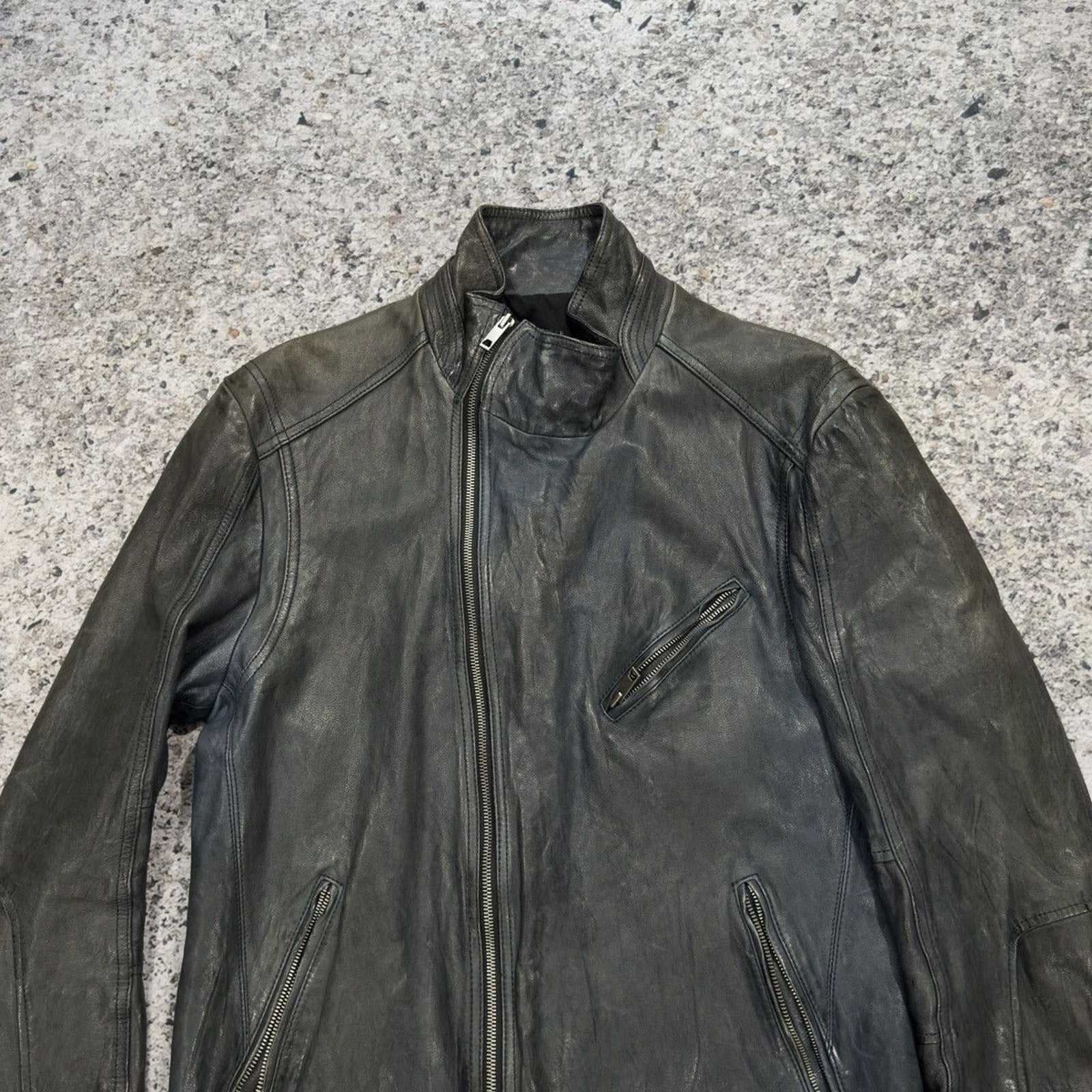 Aged Leather Double Zip Asymmetric Racer Custom Jacket