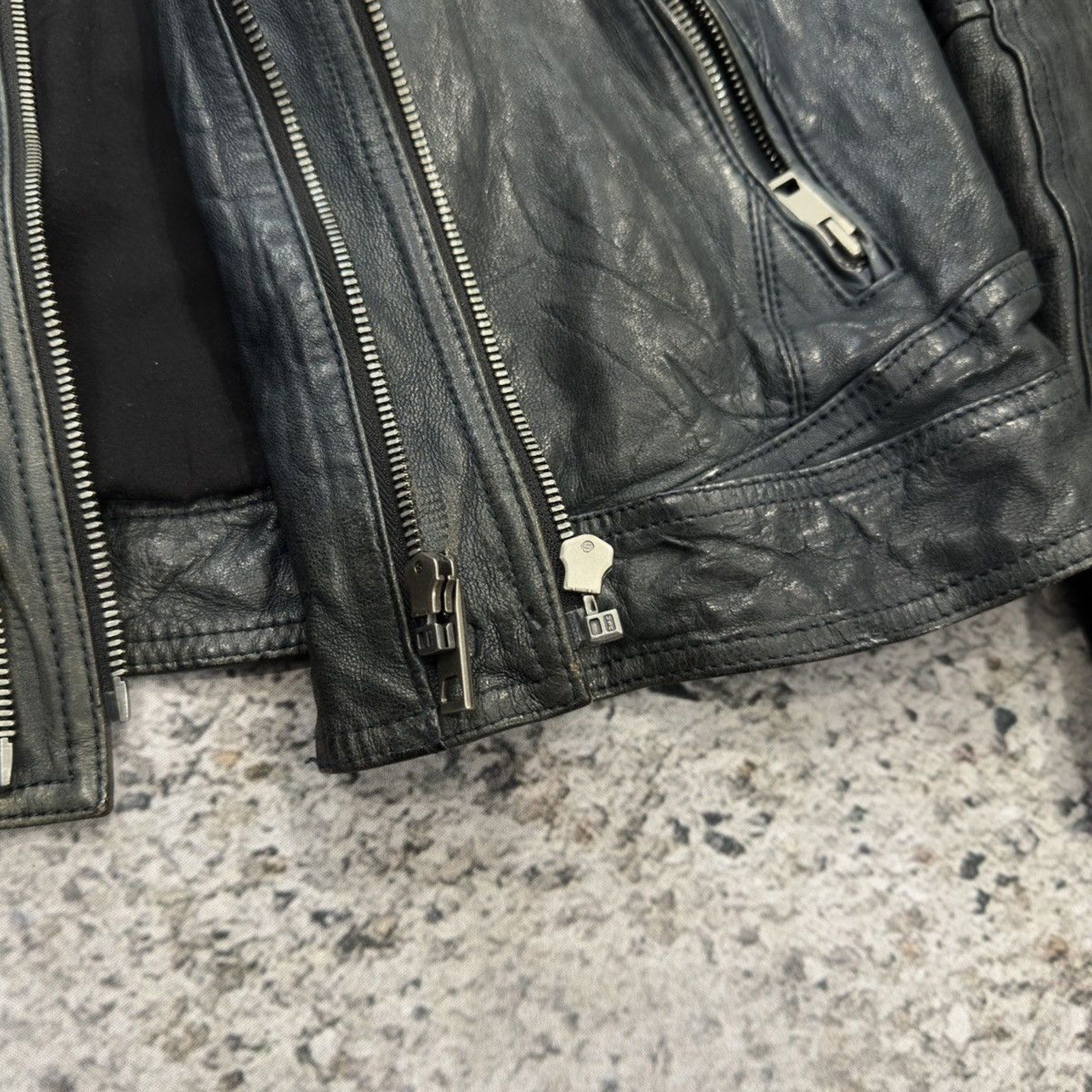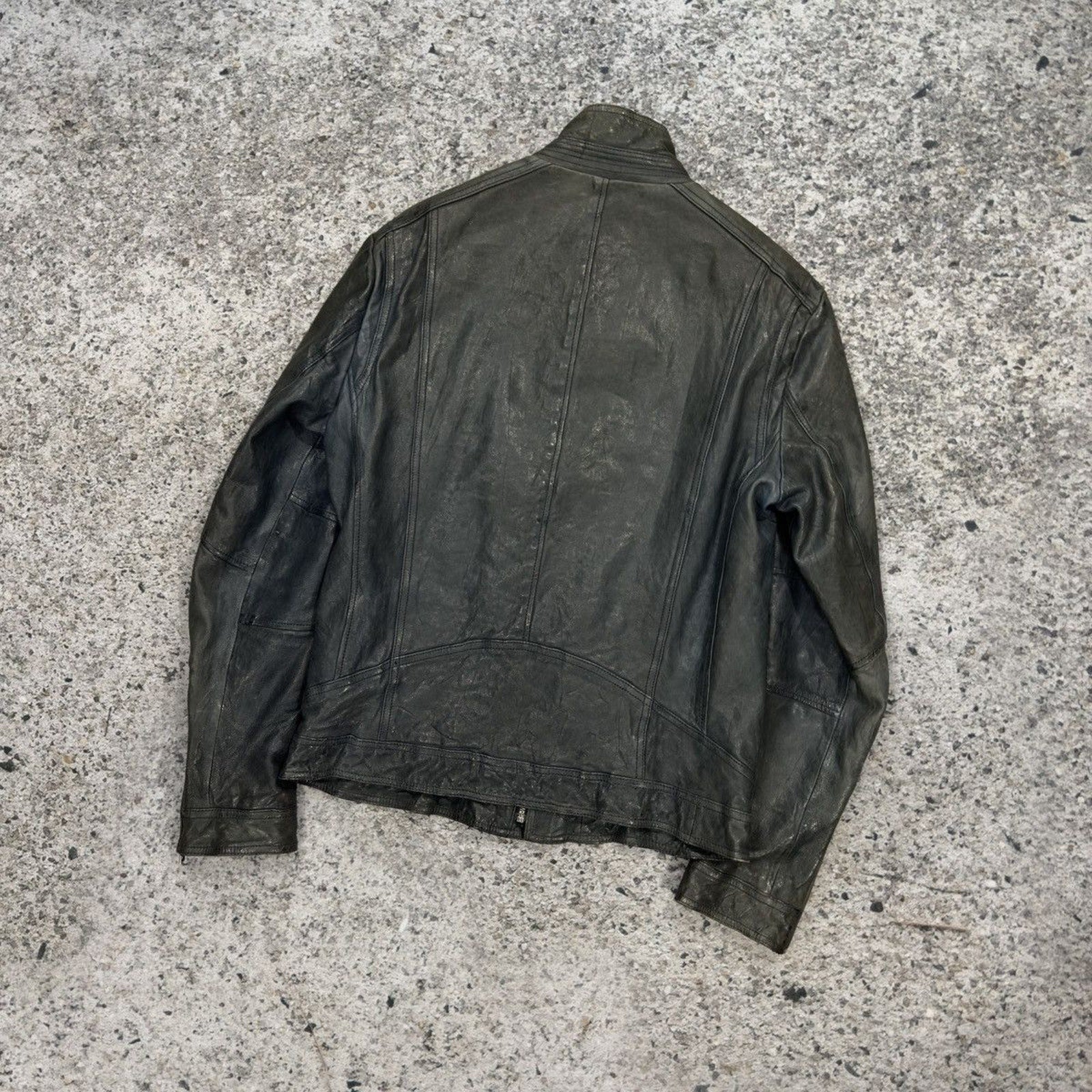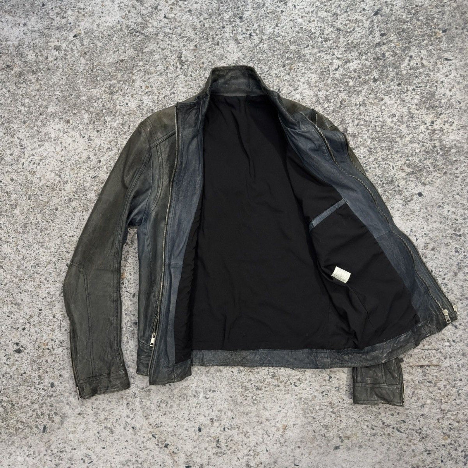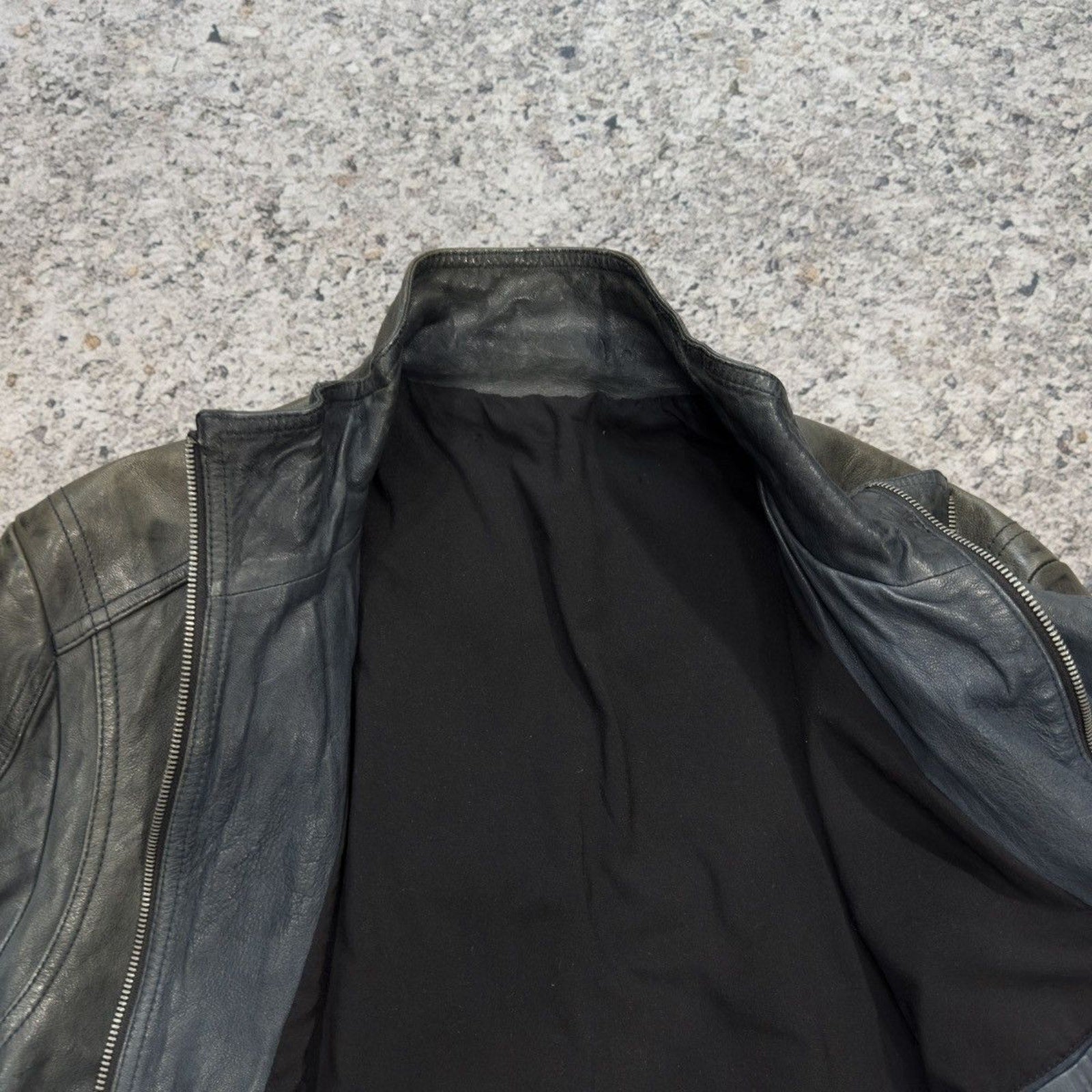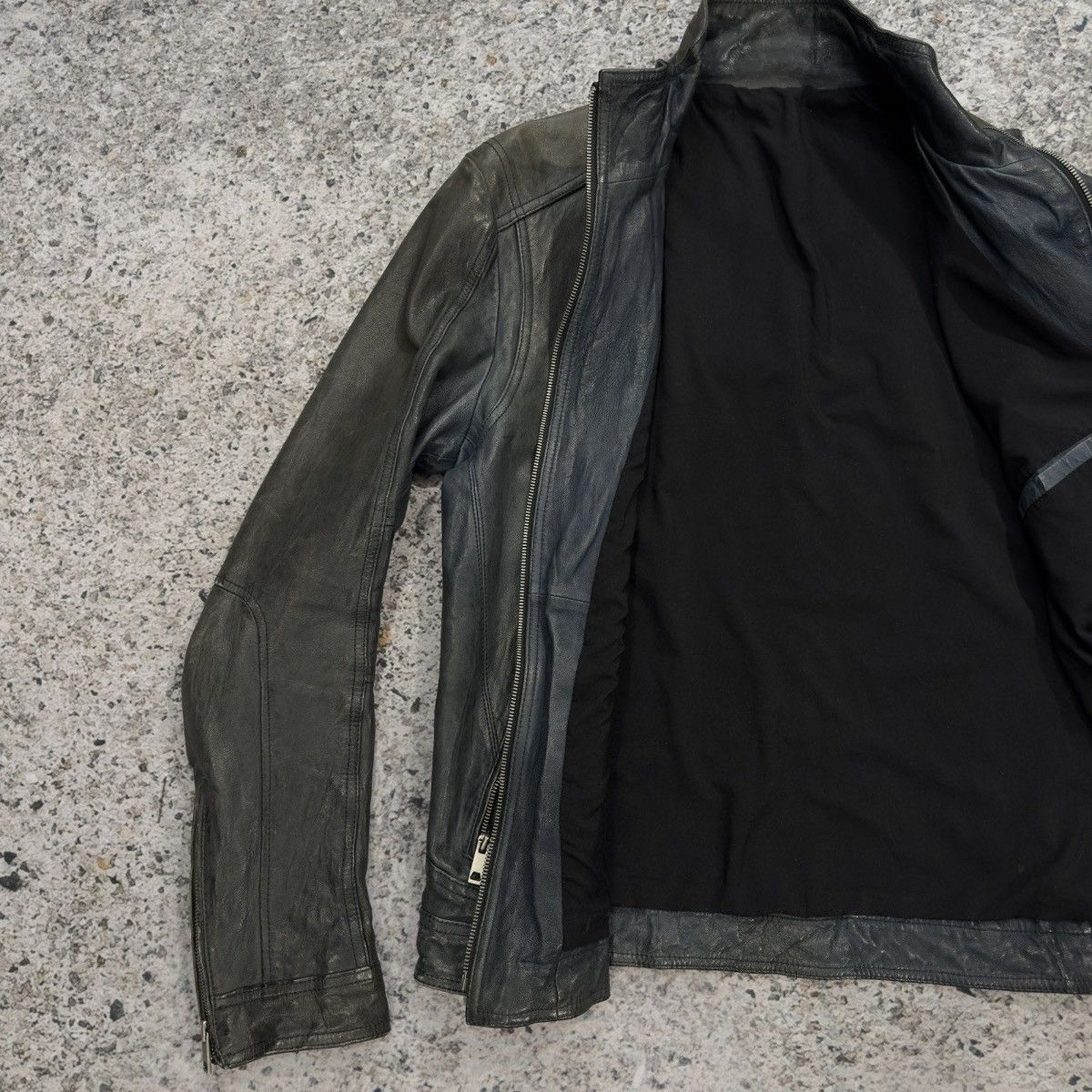 Aged Leather Double Zip Asymmetric Racer Custom Jacket