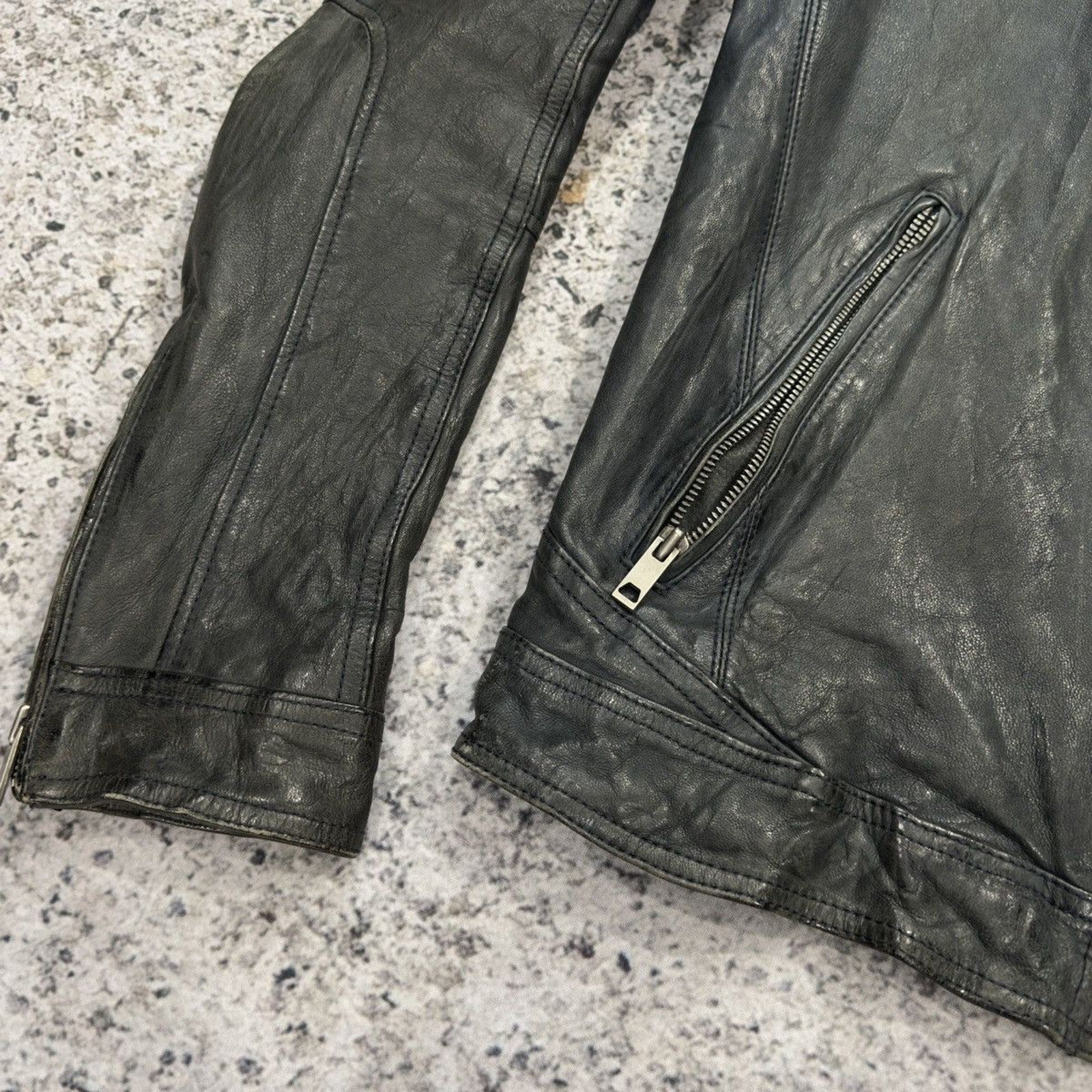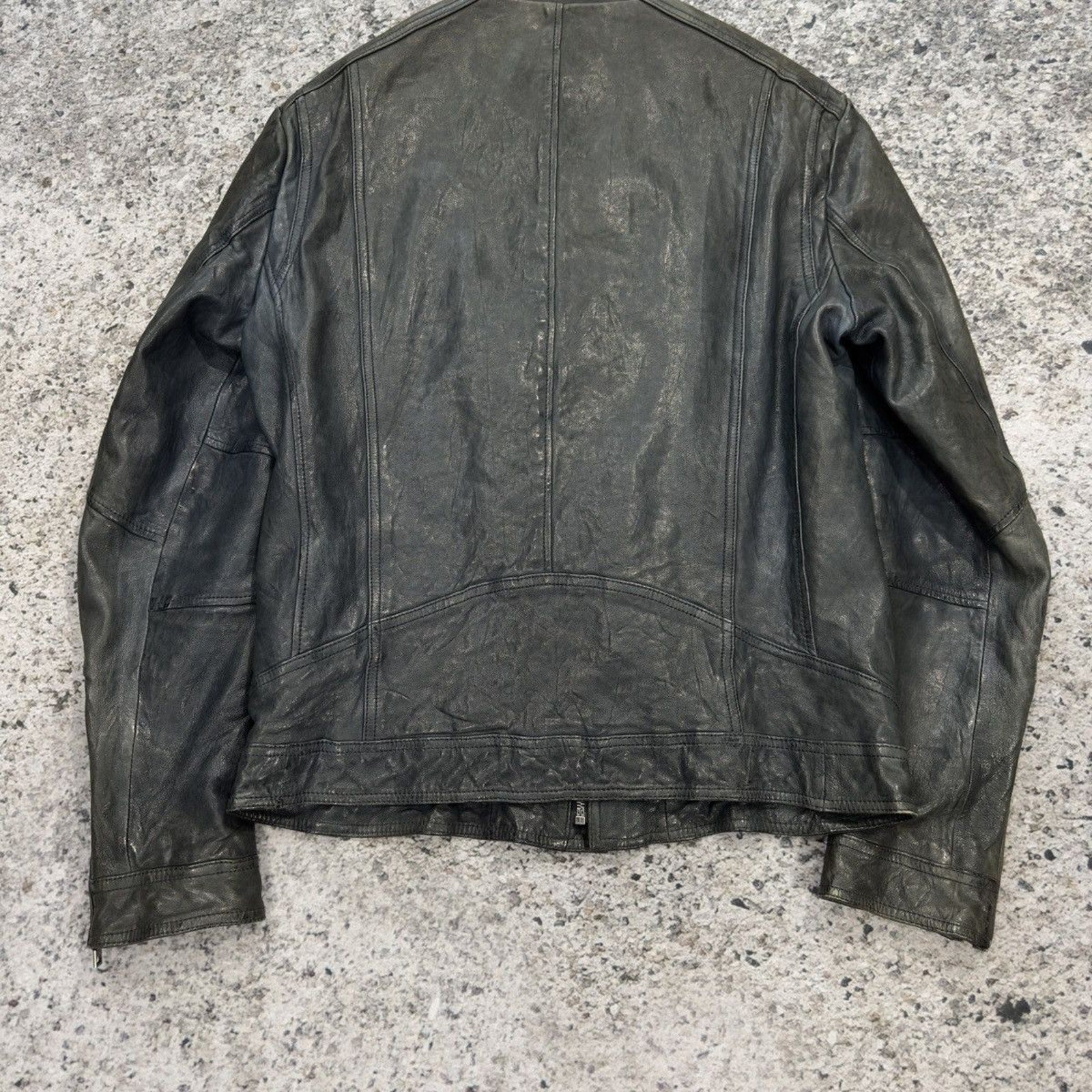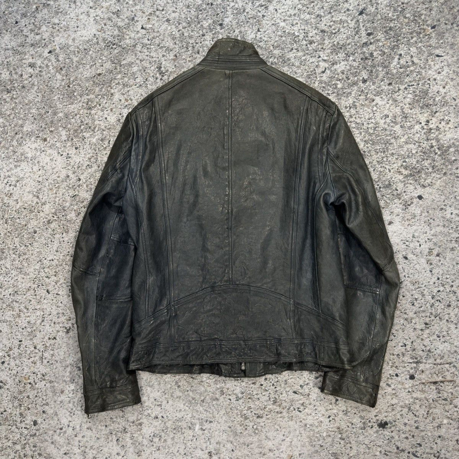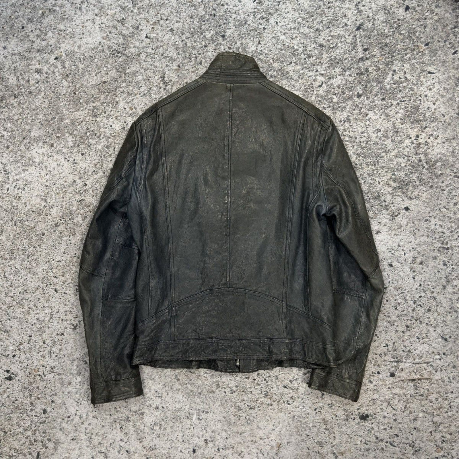 Aged Leather Double Zip Asymmetric Racer Custom Jacket