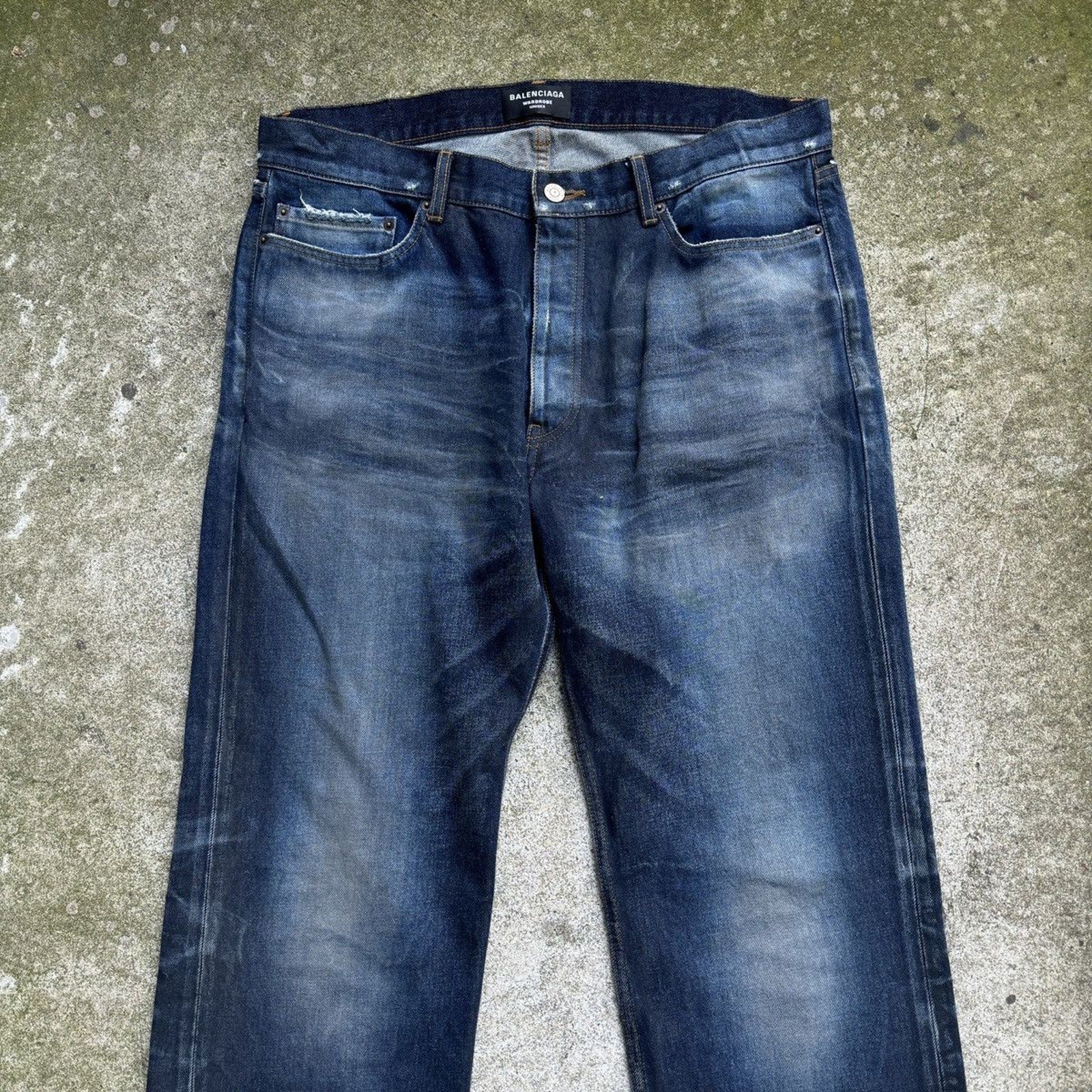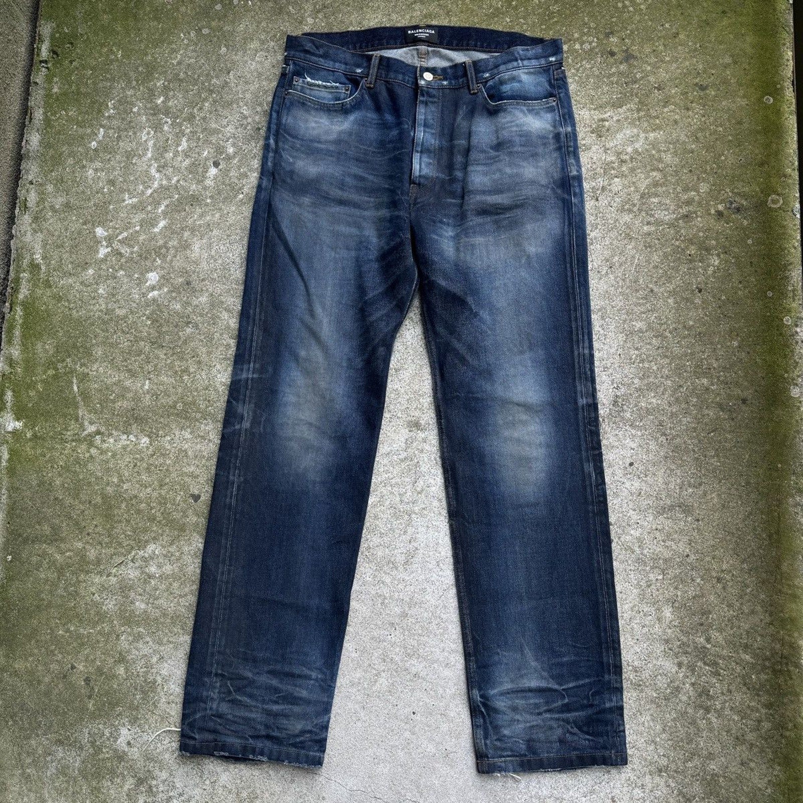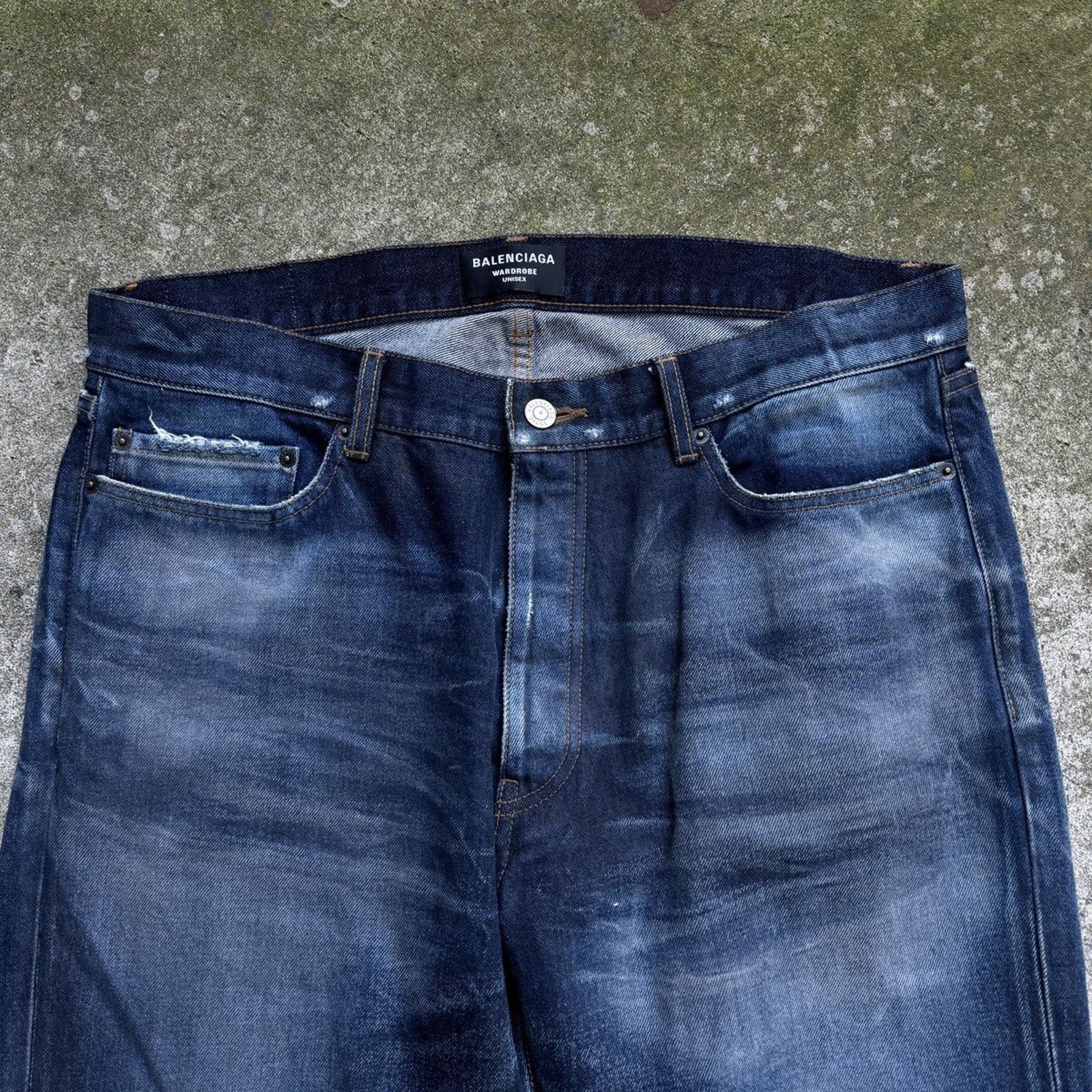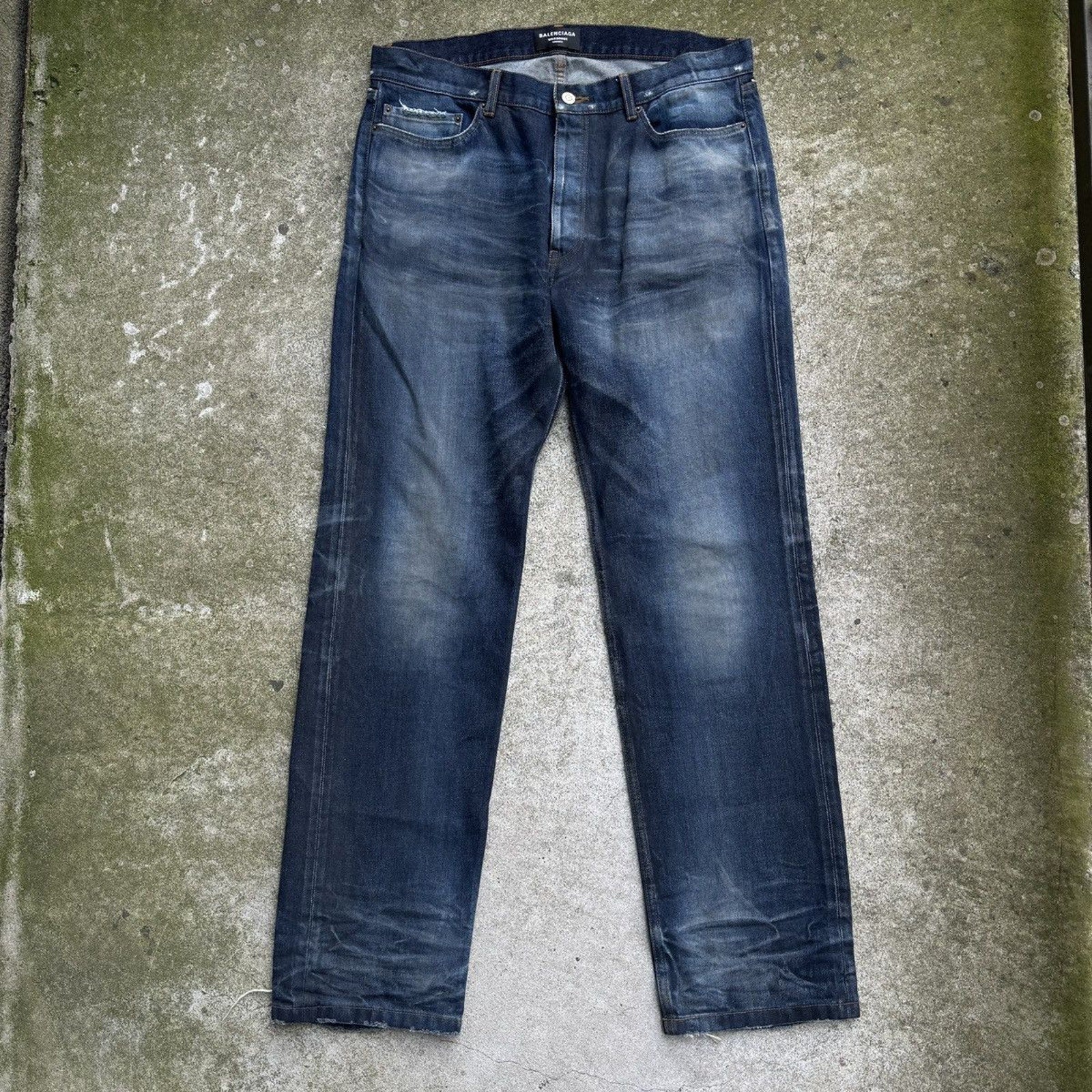 BALENCIAGA FW22 DIRTY BLUE WASH STRAIGHT FIT DENIM JEANS