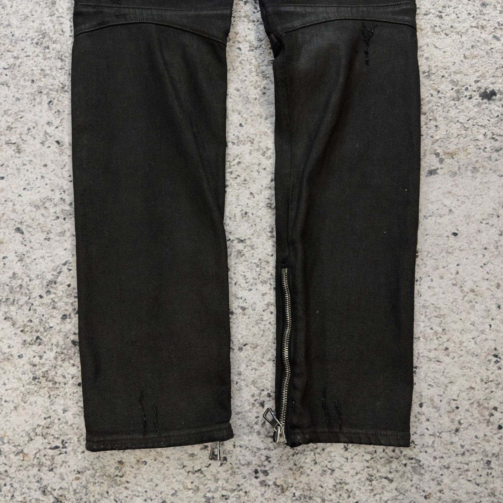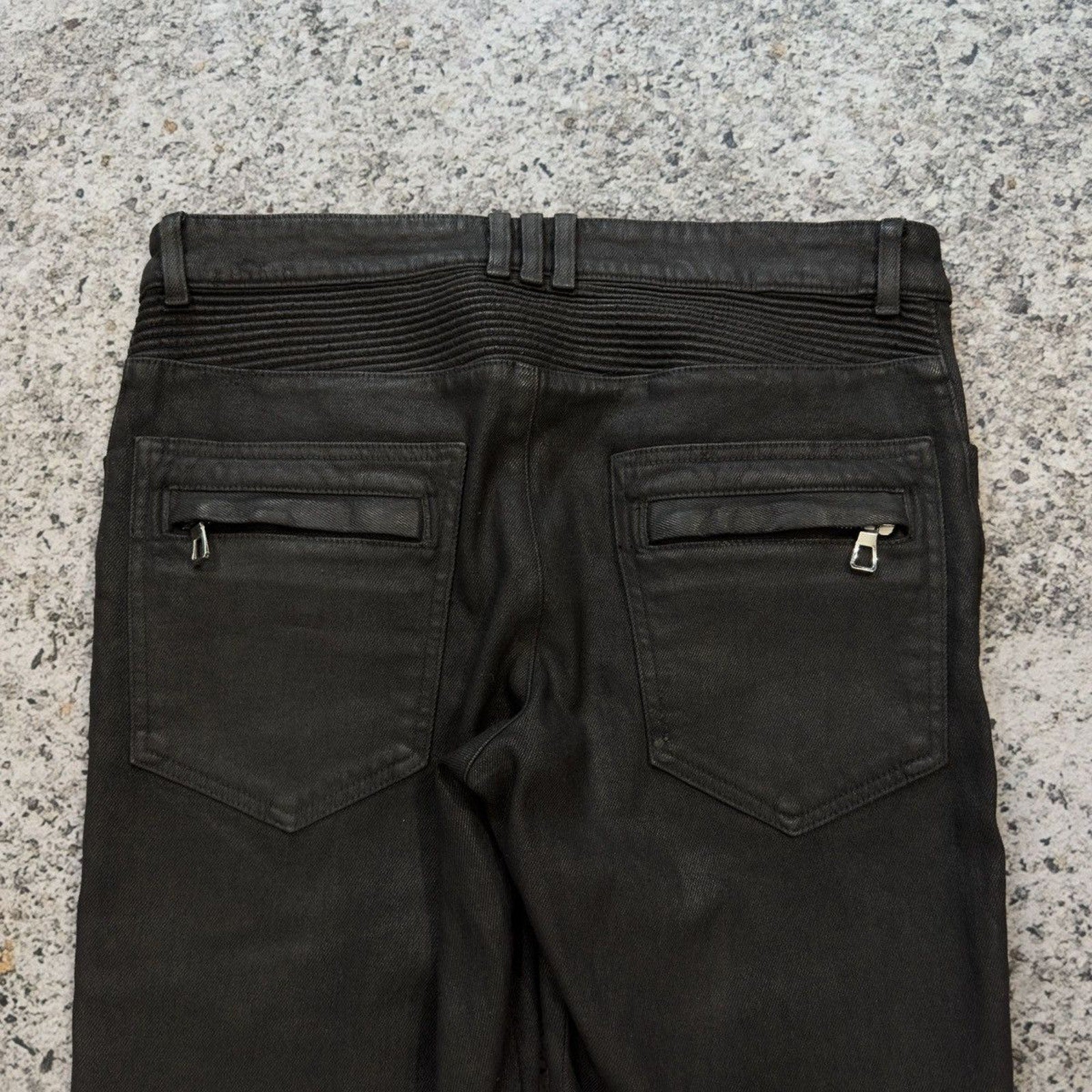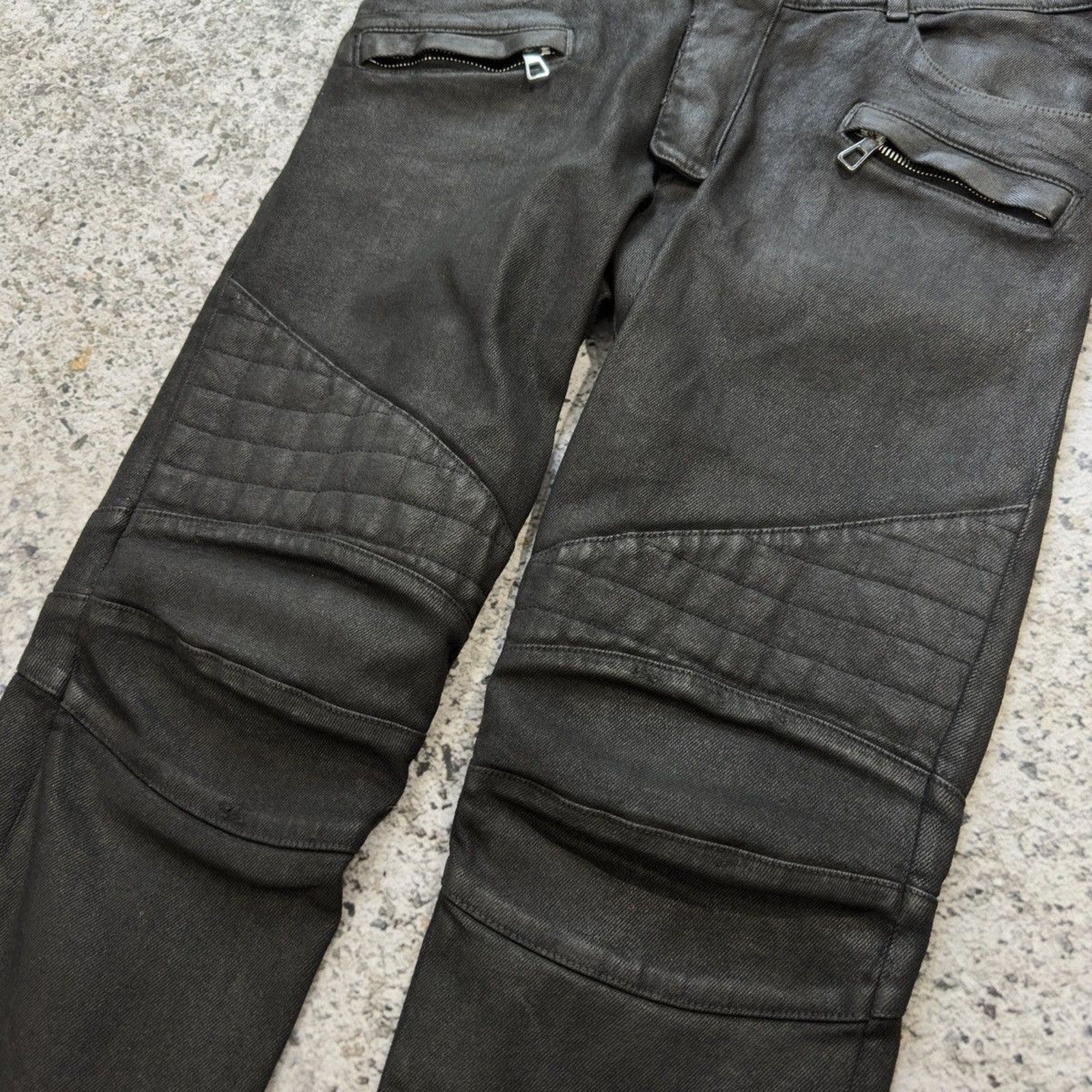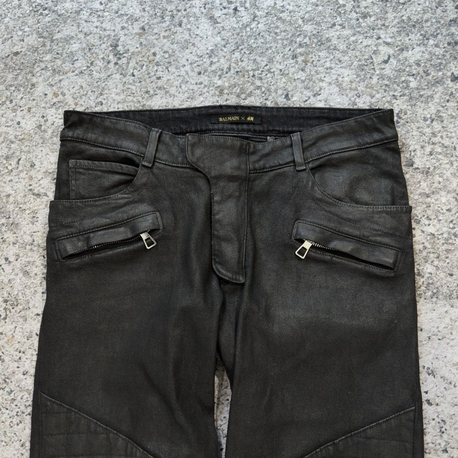 Balmain H&M Runway Waxed Biker Denim Jeans