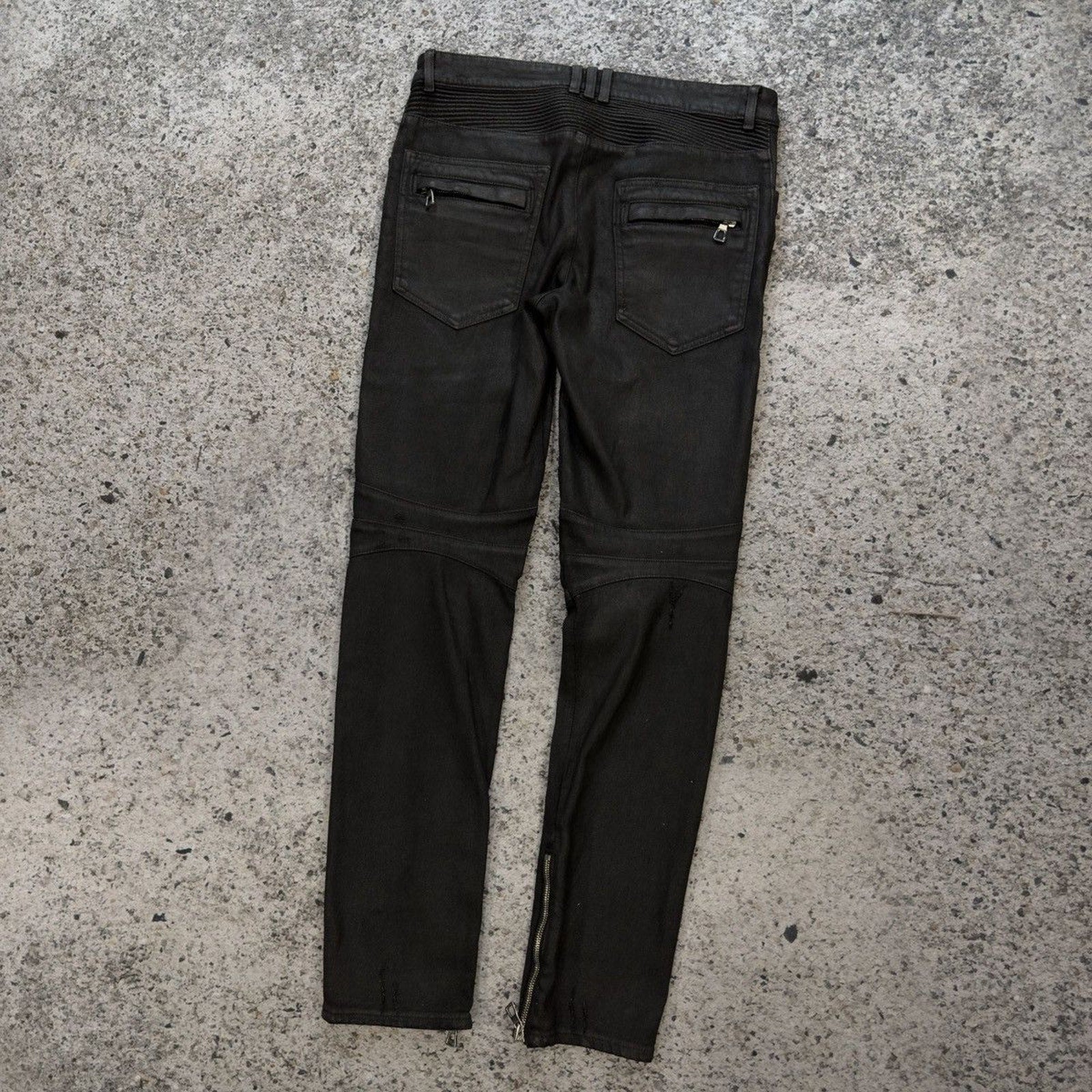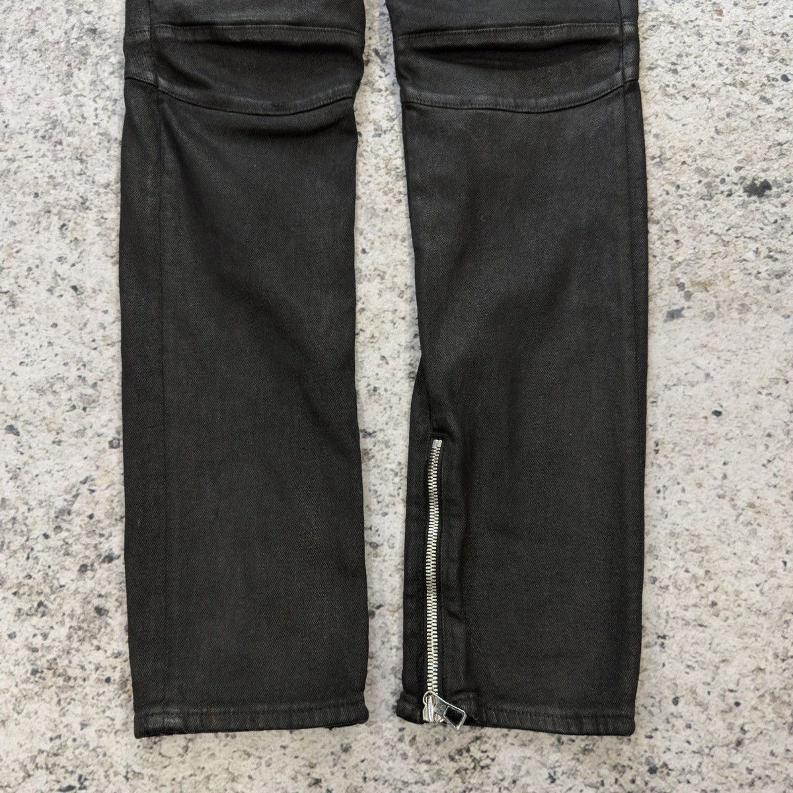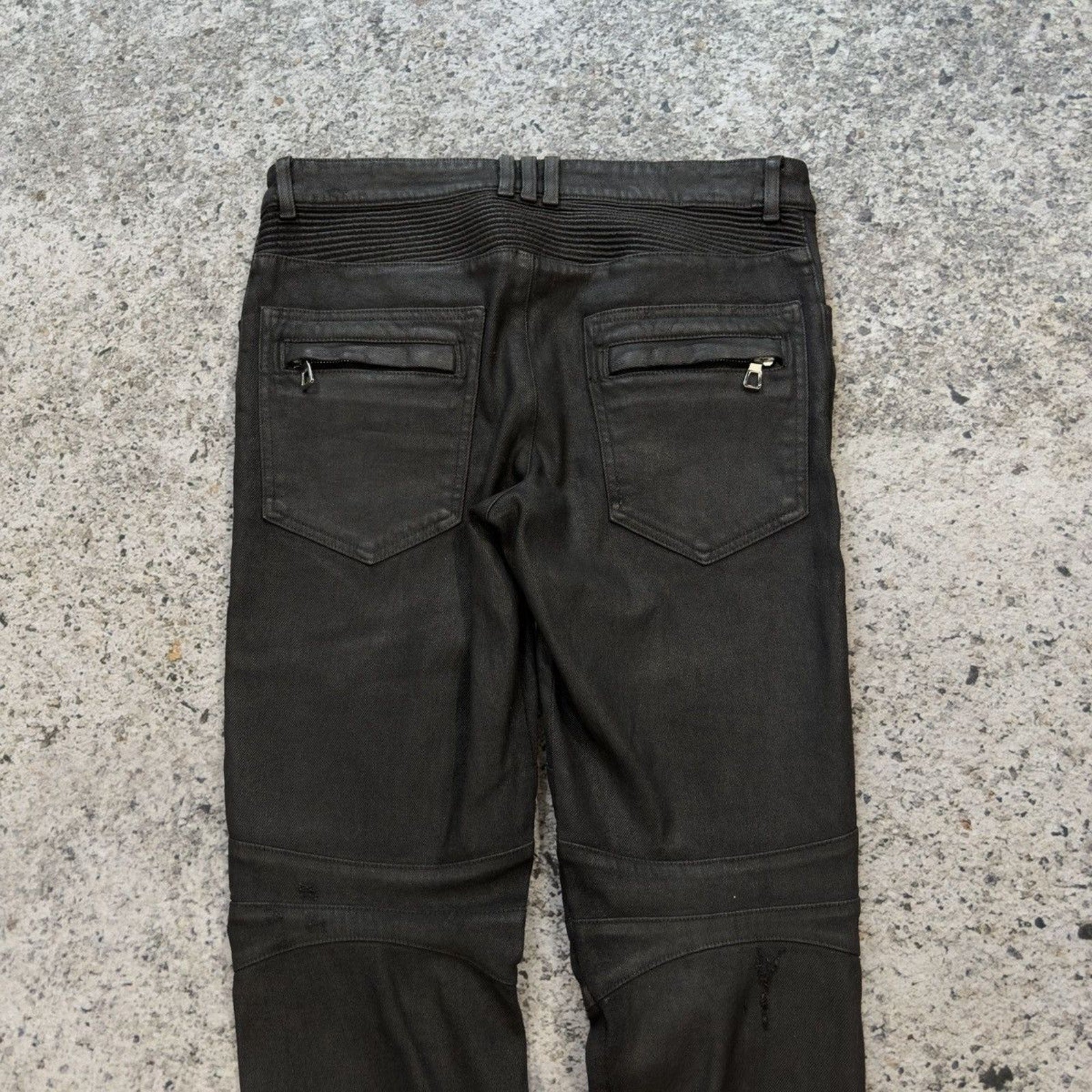 Balmain H&M Runway Waxed Biker Denim Jeans