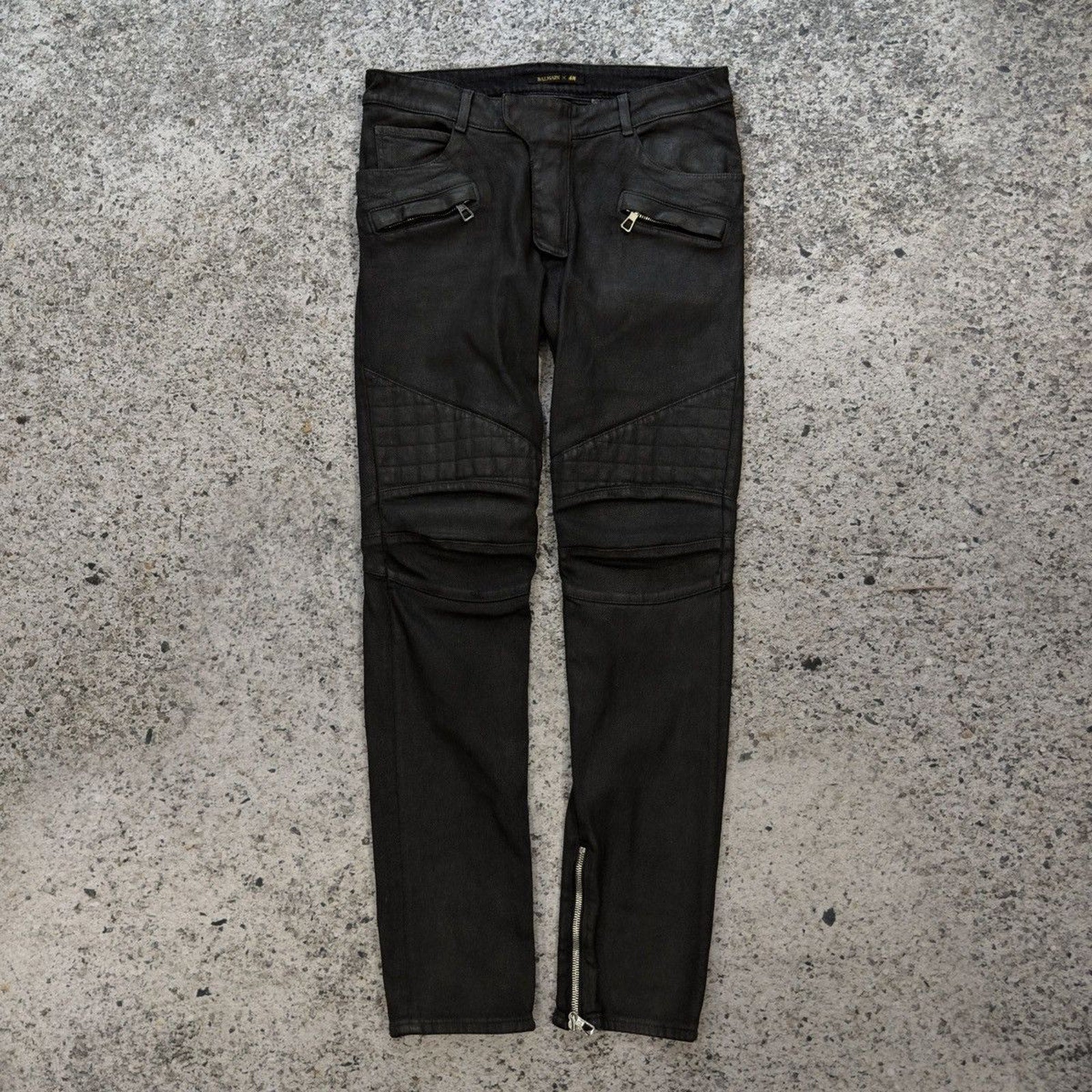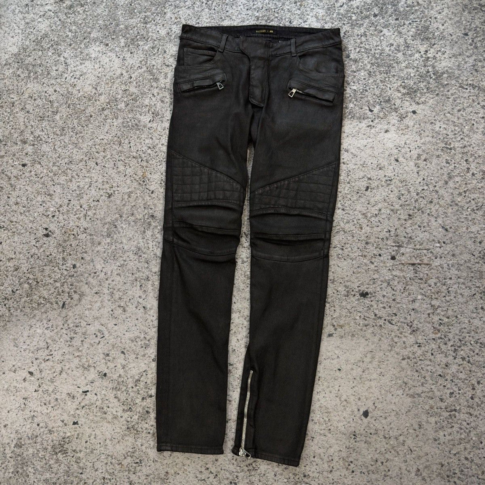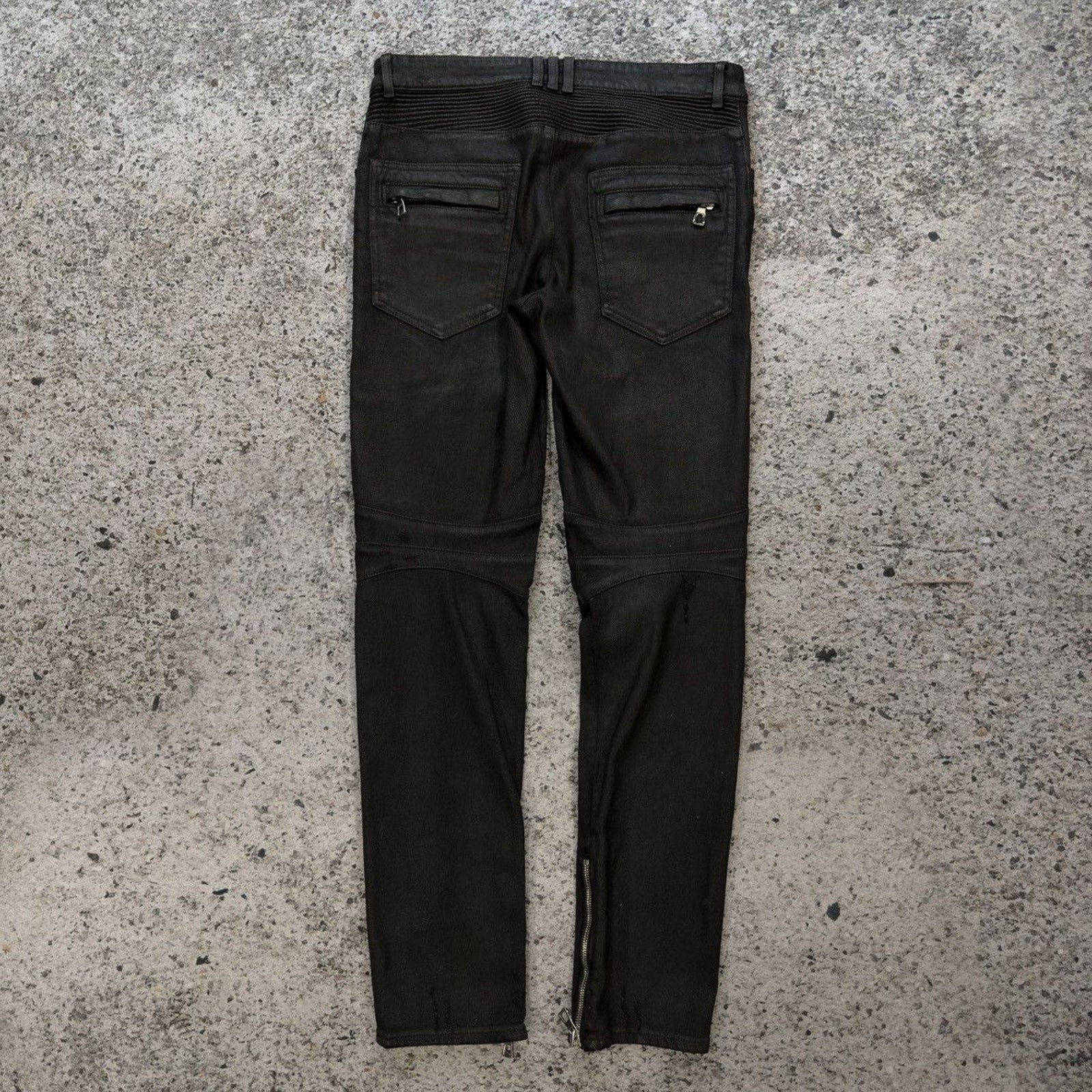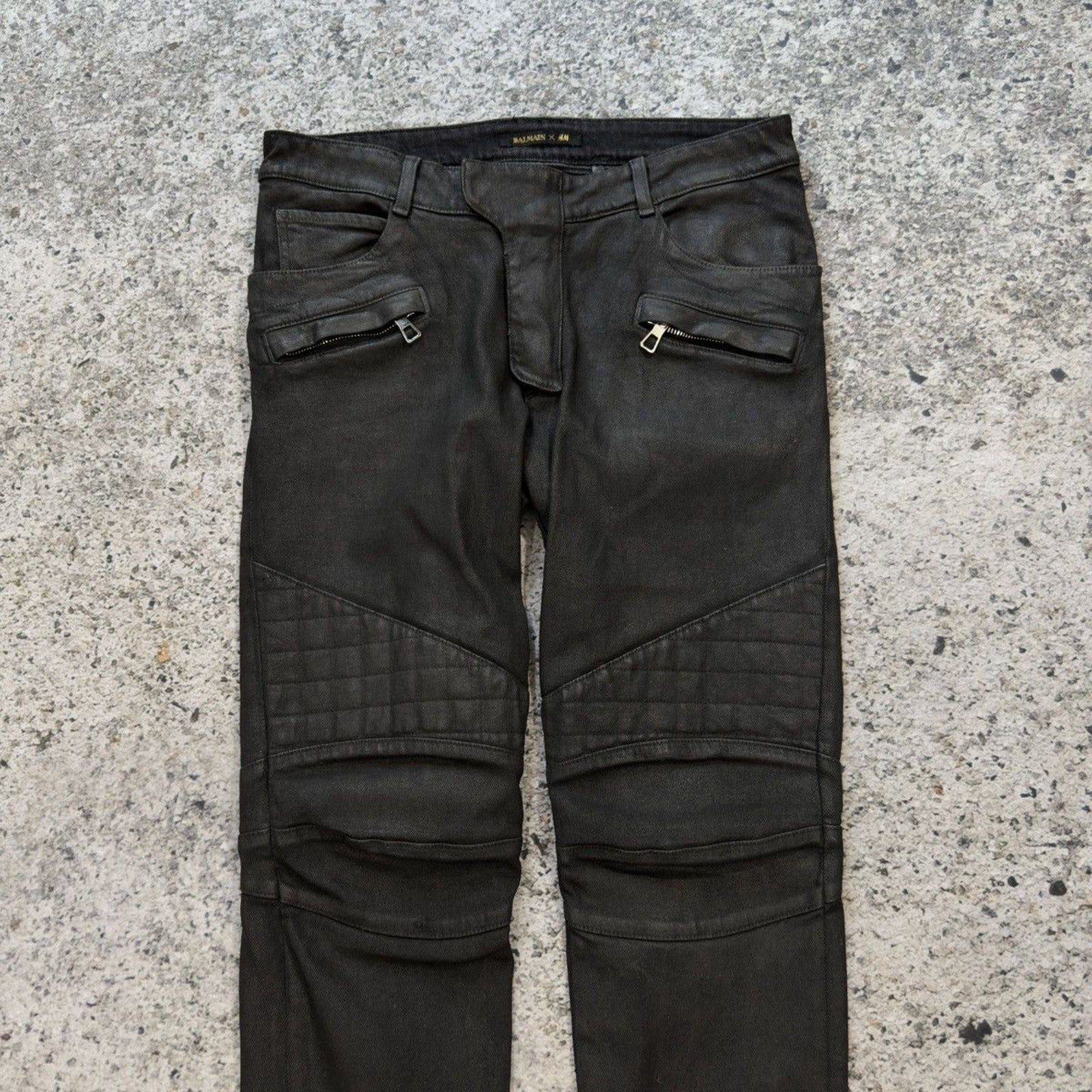 Balmain H&M Runway Waxed Biker Denim Jeans