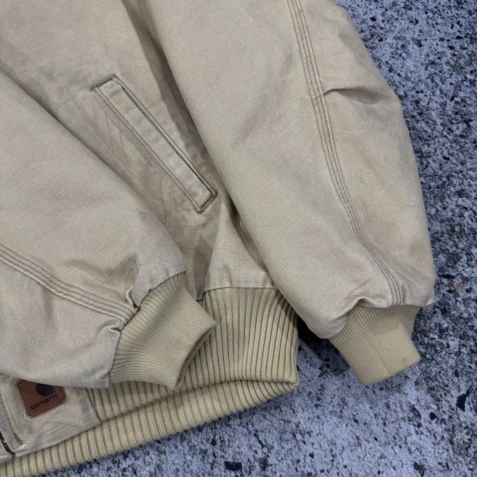 Our sizing is determined by the measurements taken by hand, rather than the tagged size on the garment. Many items, especially with vintage clothing, generally measures different than the tagged size on the article itself. A standard size large tee shirt from decades ago generally fits different than a standard size large in modern sizing, due to changes in manufacturing standards, different practices by brand, shrinkage, aging, varying fabrics & materials, etc.