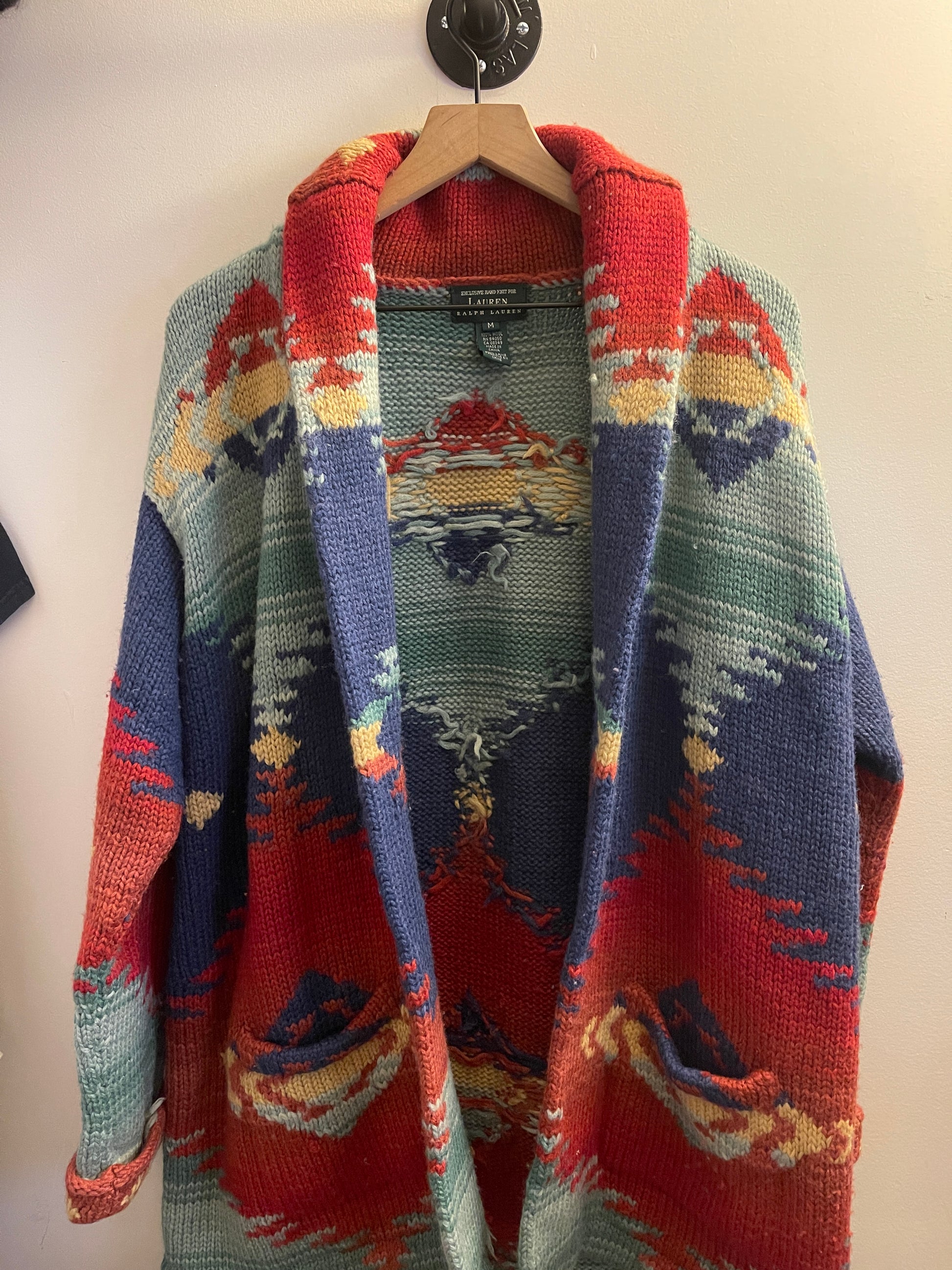 POLO RALPH LAUREN HAND KNIT AZTEC CARDIGAN SWEATER