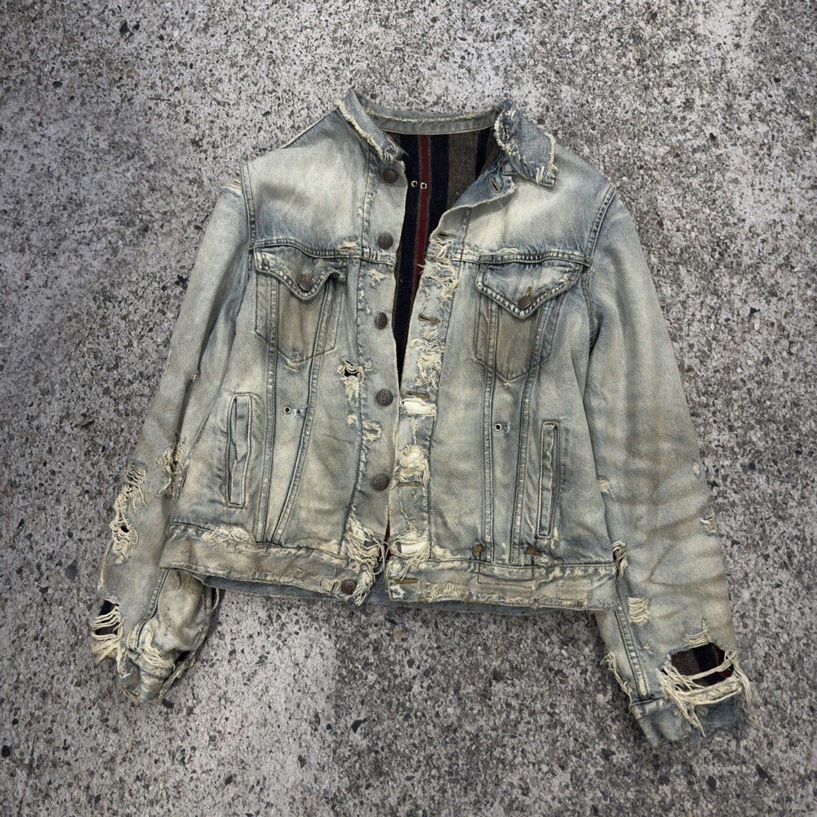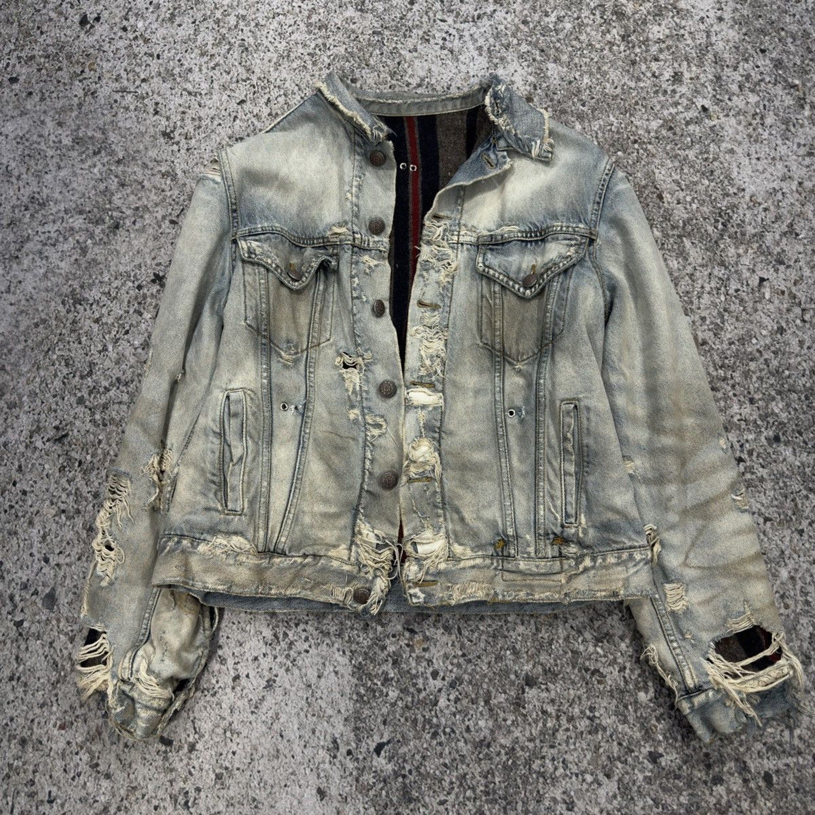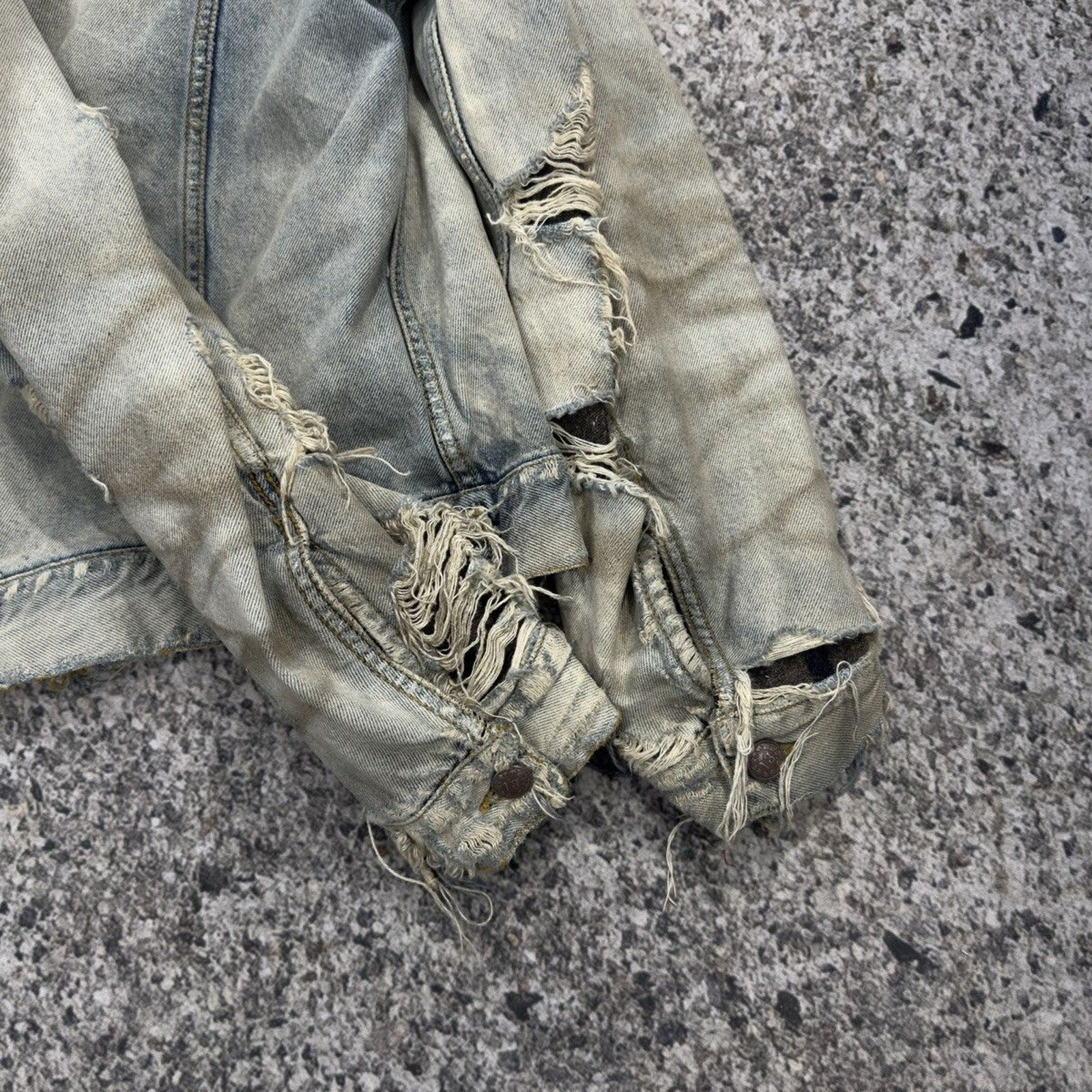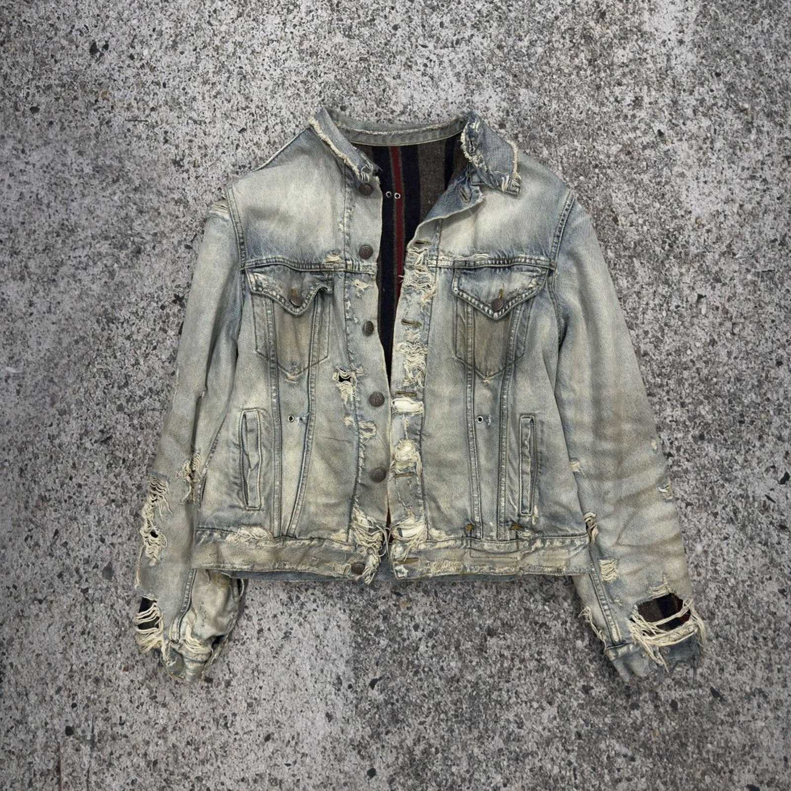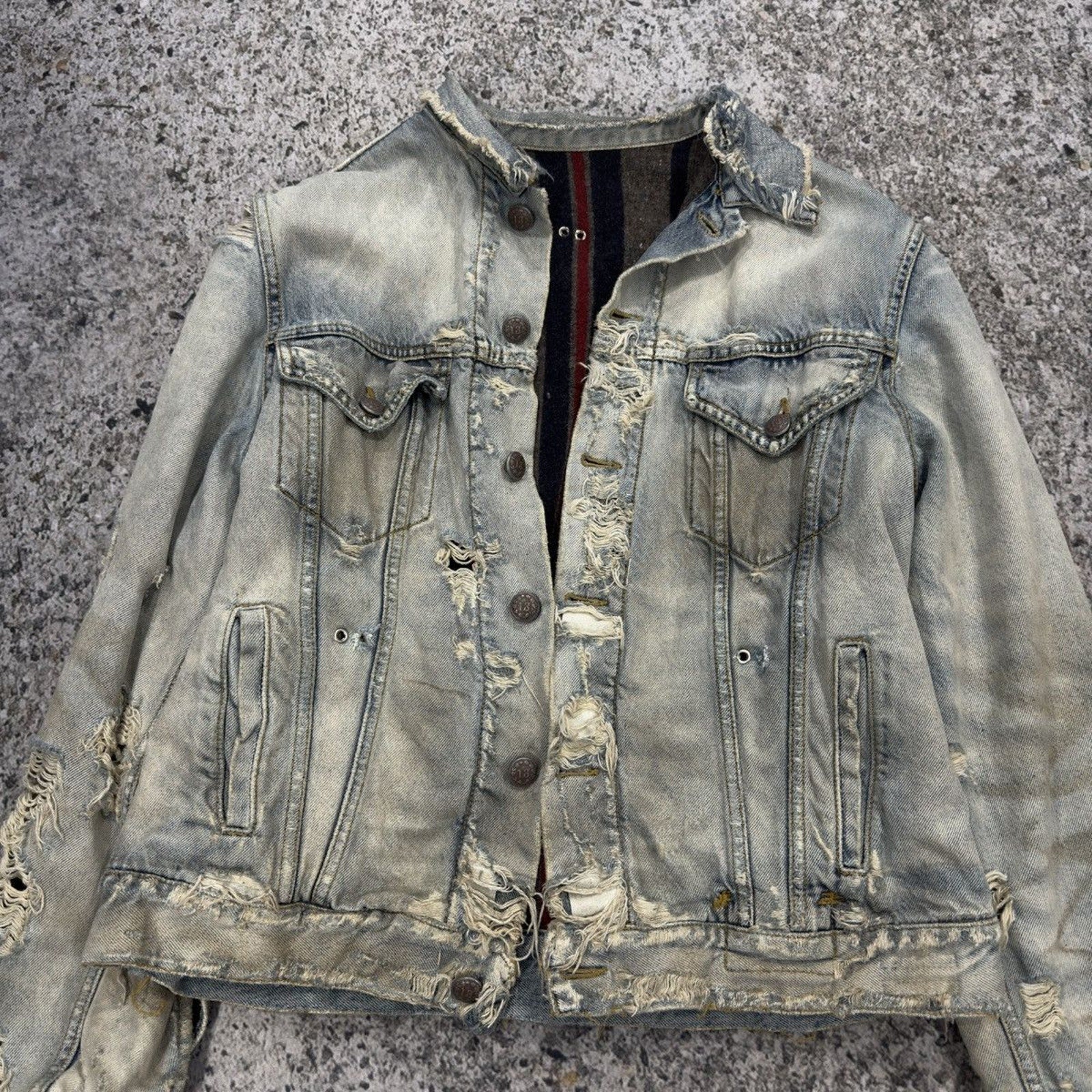 R13 Distressed Thrashed Faded Refurbished Denim Jacket