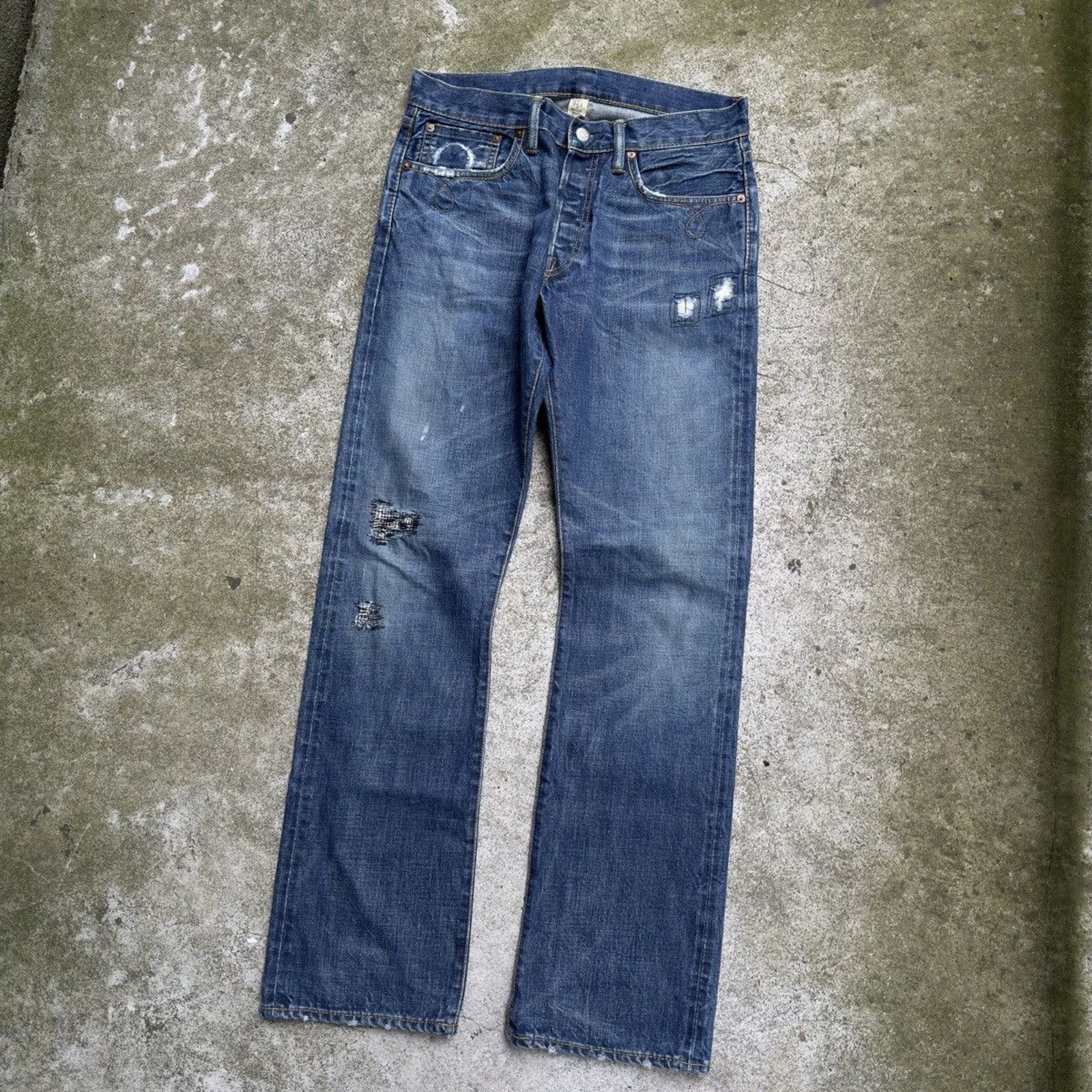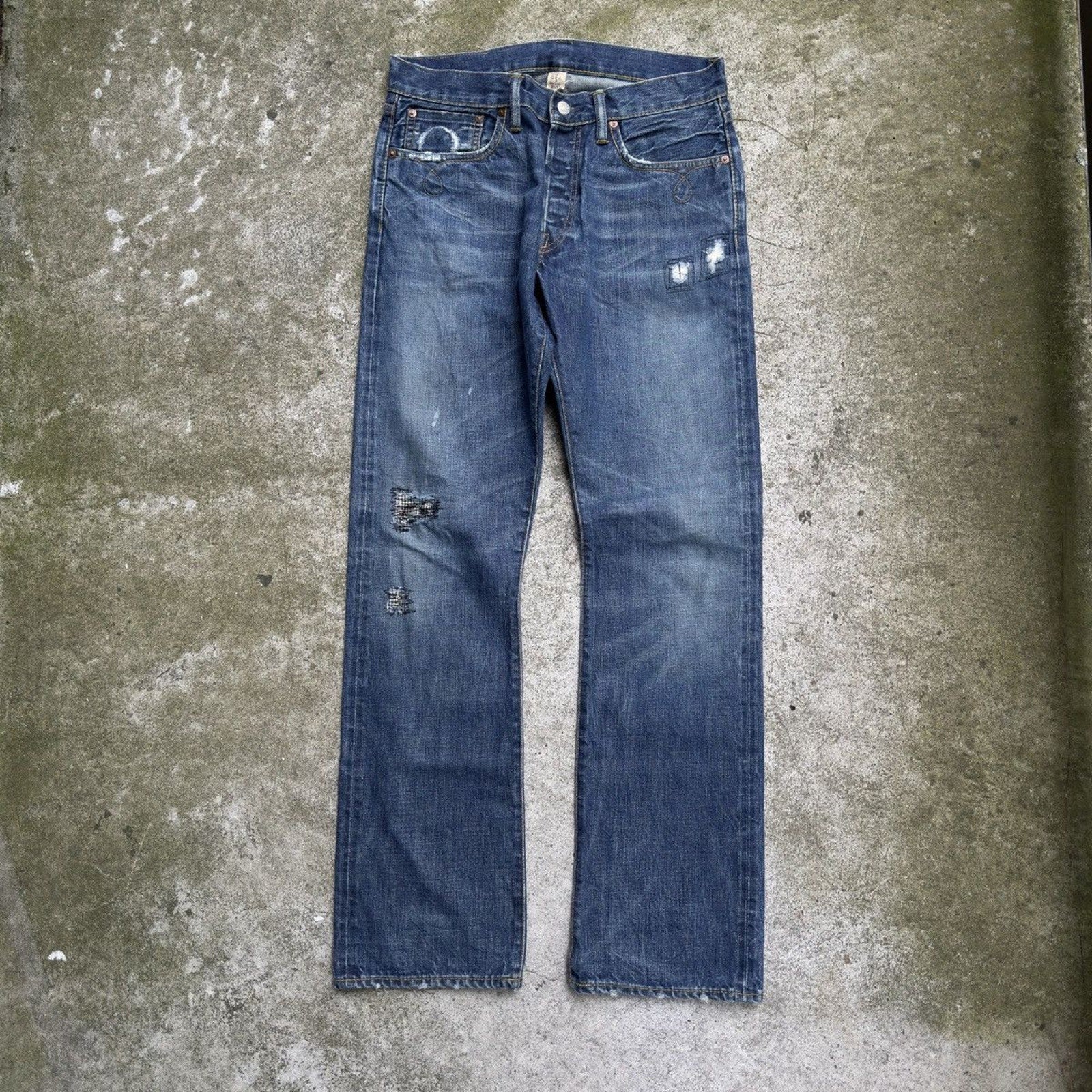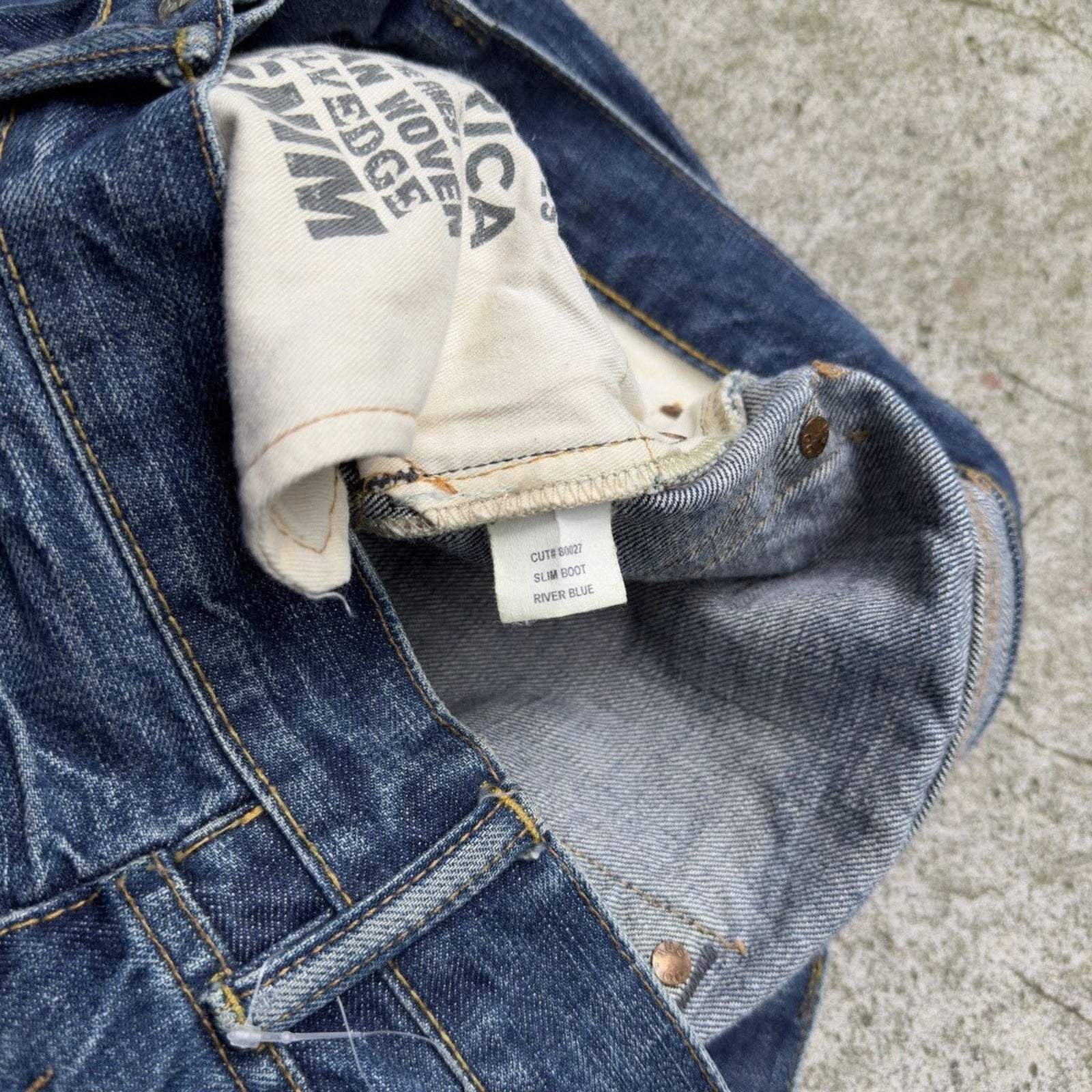 RRL SLIM BOOT REPAIRED JAPAN SELVEDGE DENIM JEANS RIVER BLUE