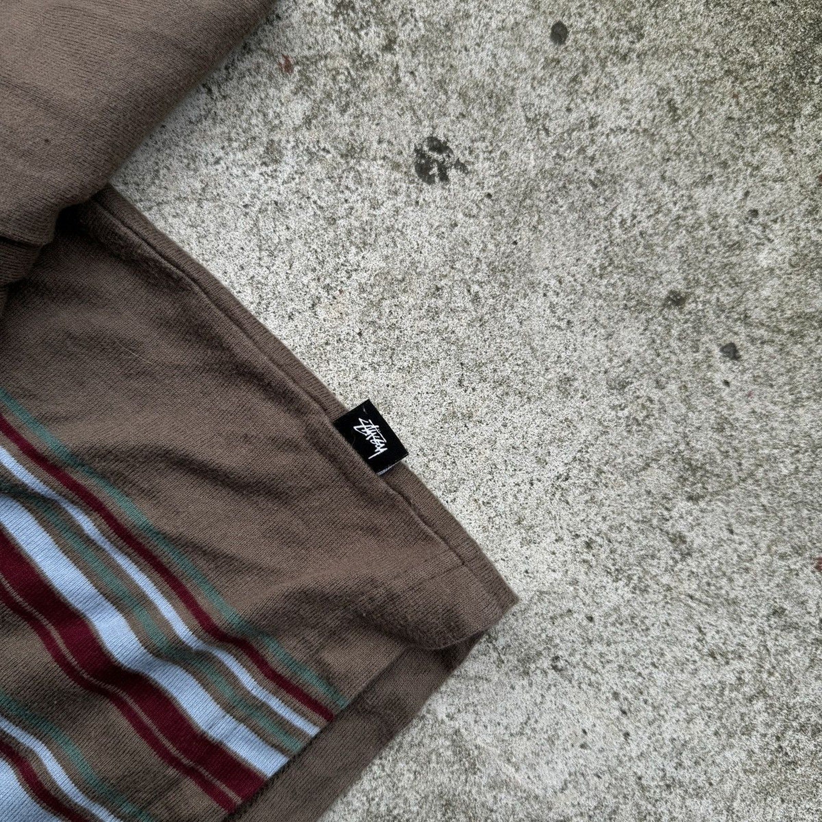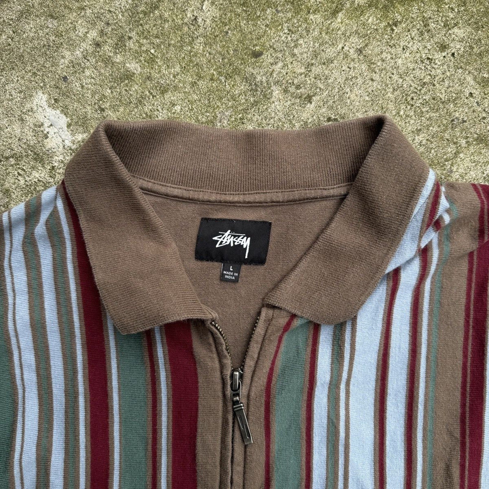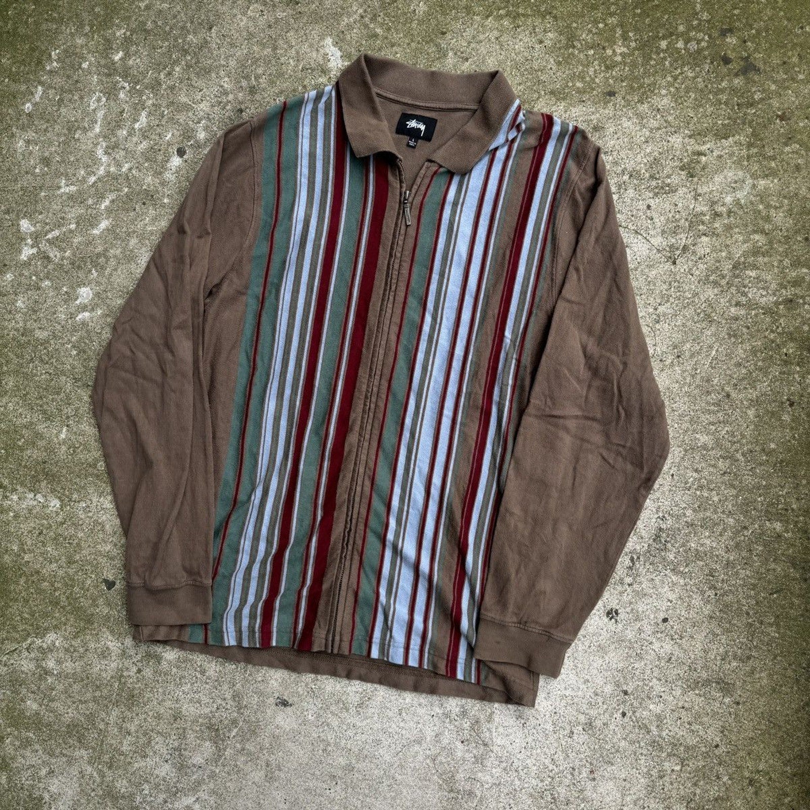 STUSSY STRIPED ZIP UP CARDIGAN SHIRT