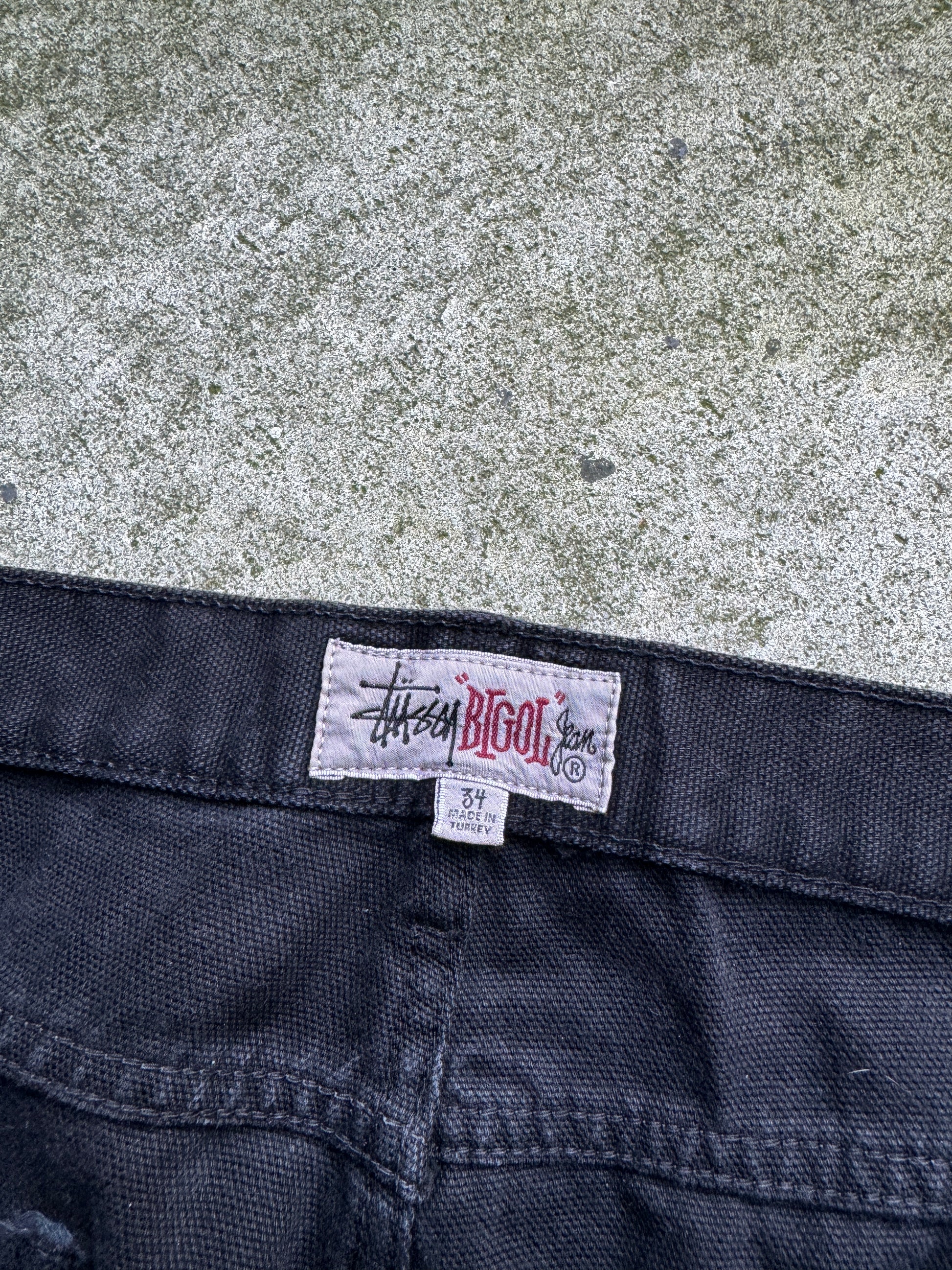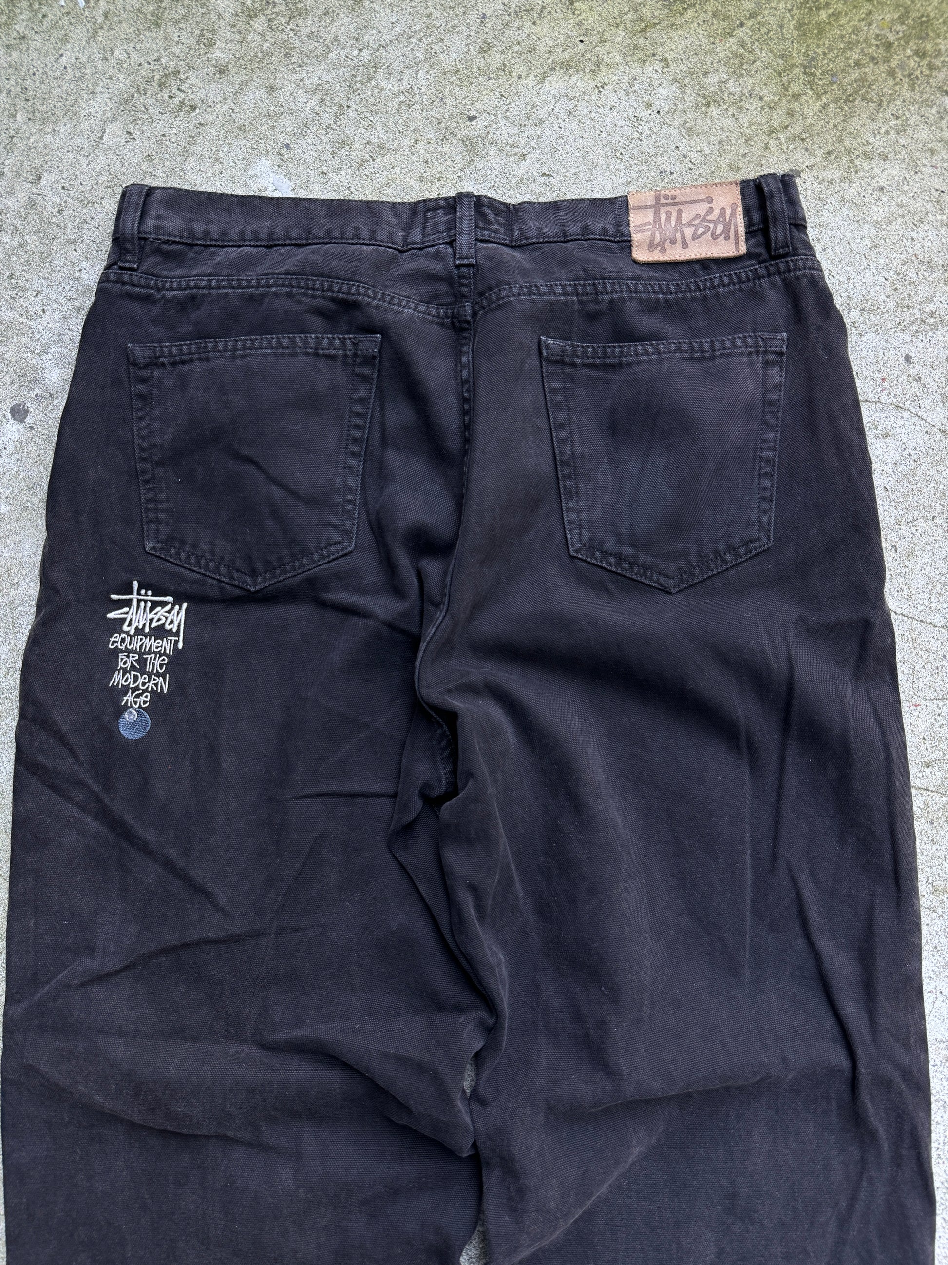 STUSSY WASHED CANVAS BLACK 8 BALL BIG OL’ JEANS