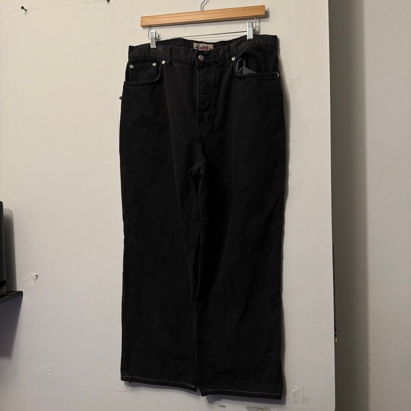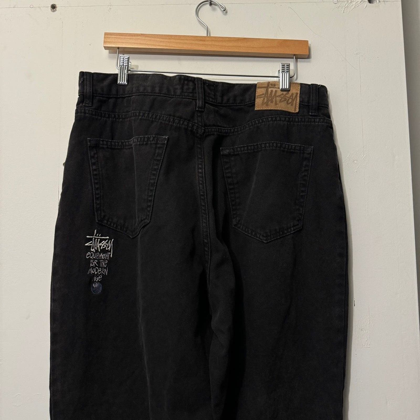 STUSSY WASHED CANVAS BLACK 8 BALL BIG OL' JEANS