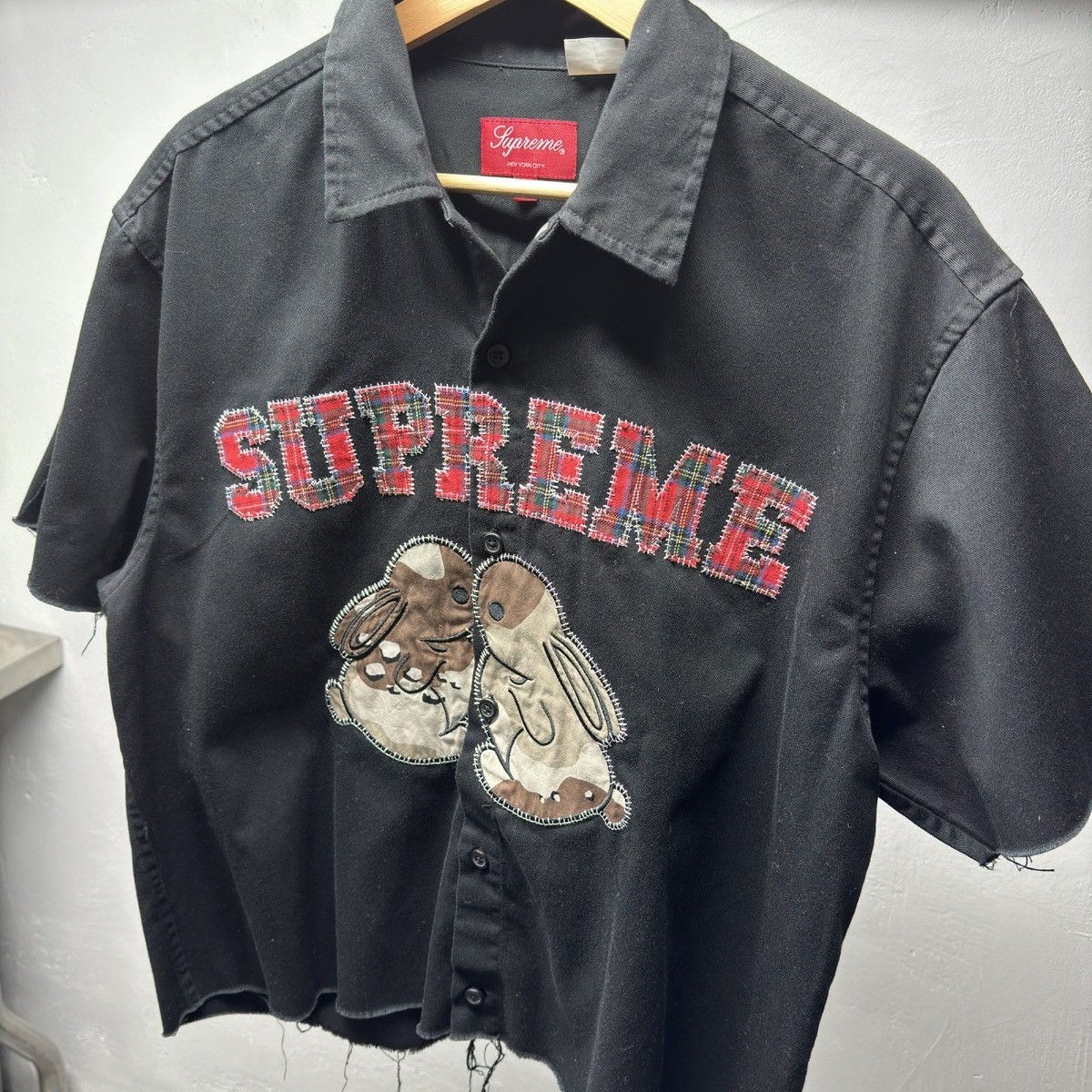 Supreme Embroidered Bunnies Shirt Cropped Distressed