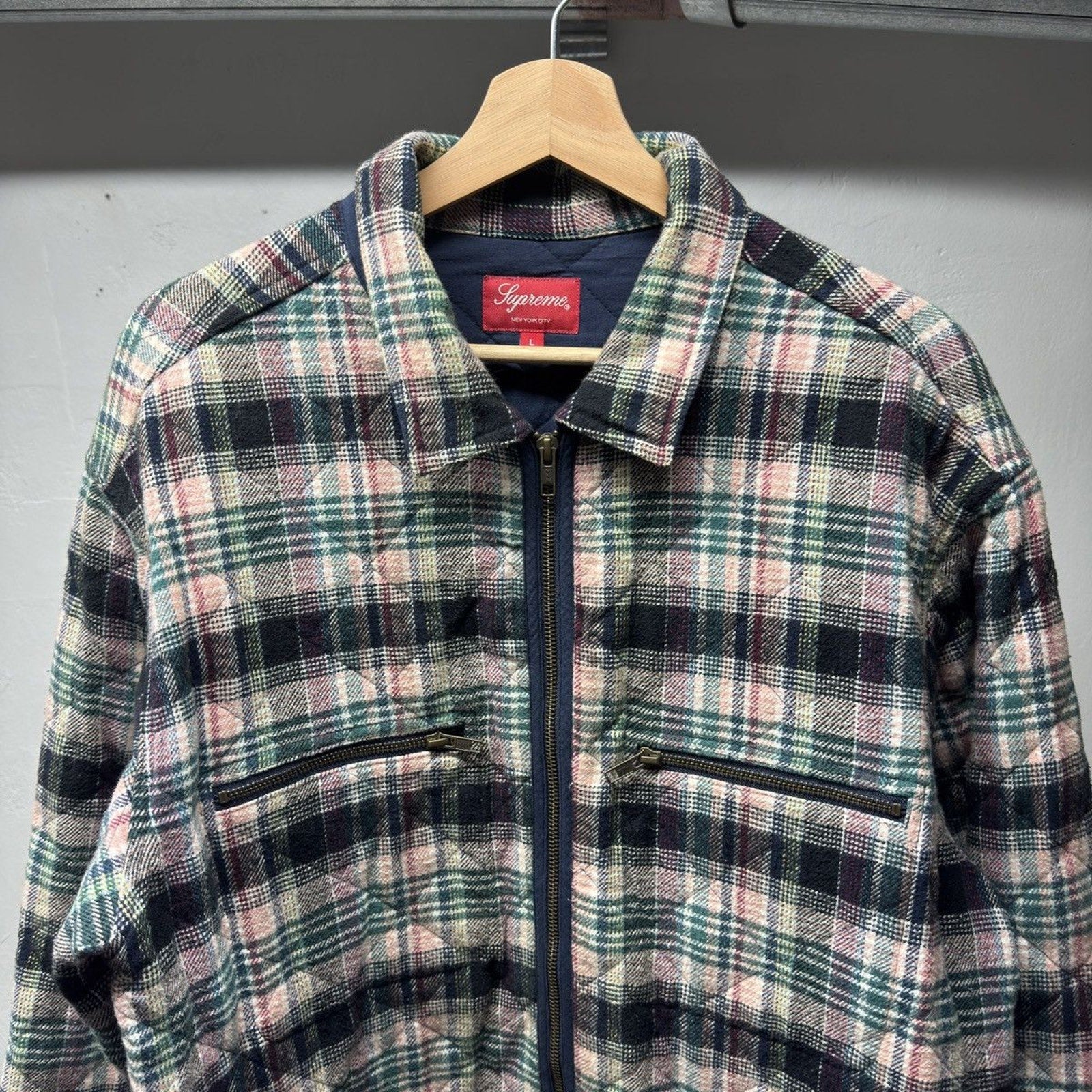 Supreme FW19 Quilted Plaid Flannel Zip Up Grunge