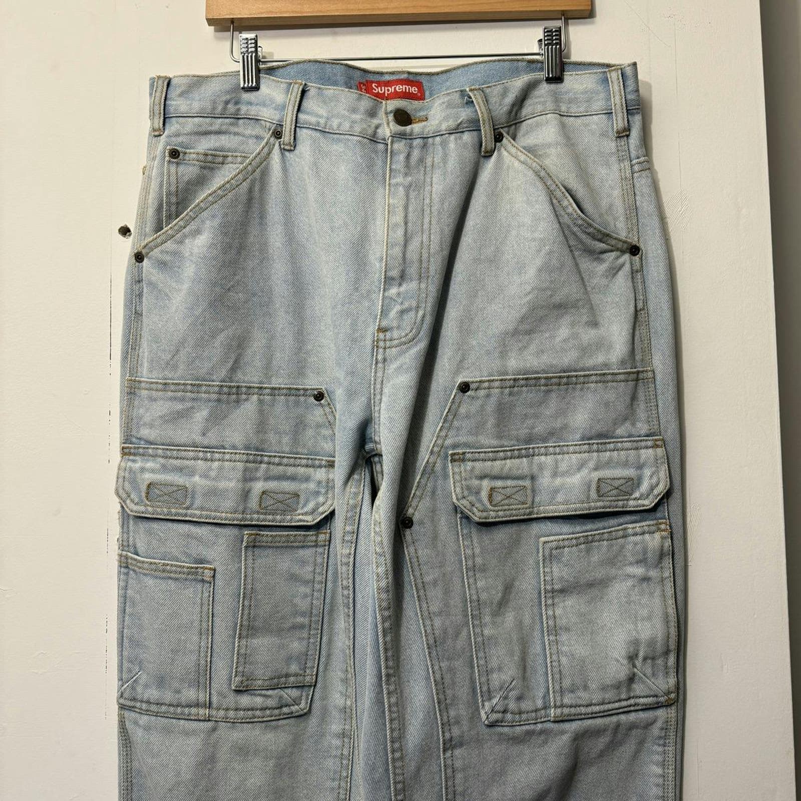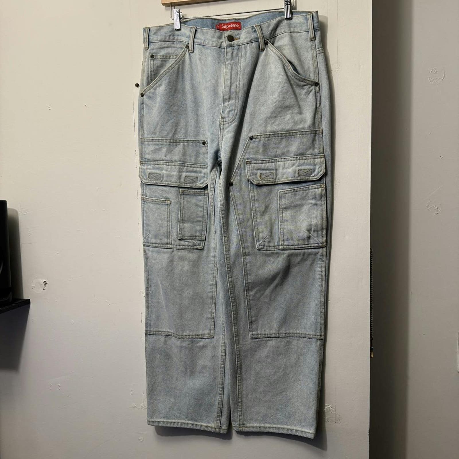 SUPREME SS22 DOUBLE KNEE DENIM LIGHT WASH UTILITY JEANS