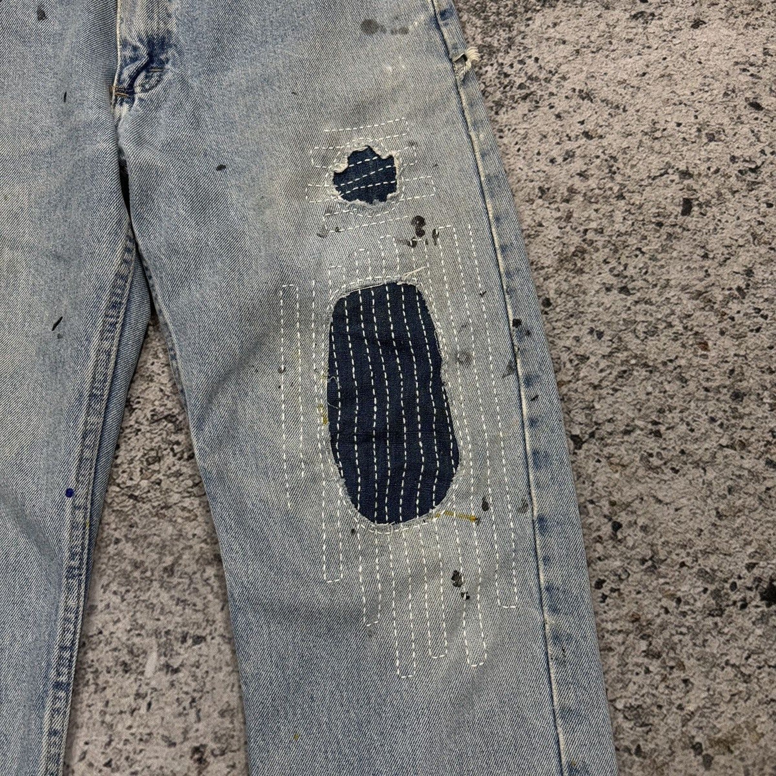 Thrashed Faded Boro Stitched Vintage Wrangler Jeans
