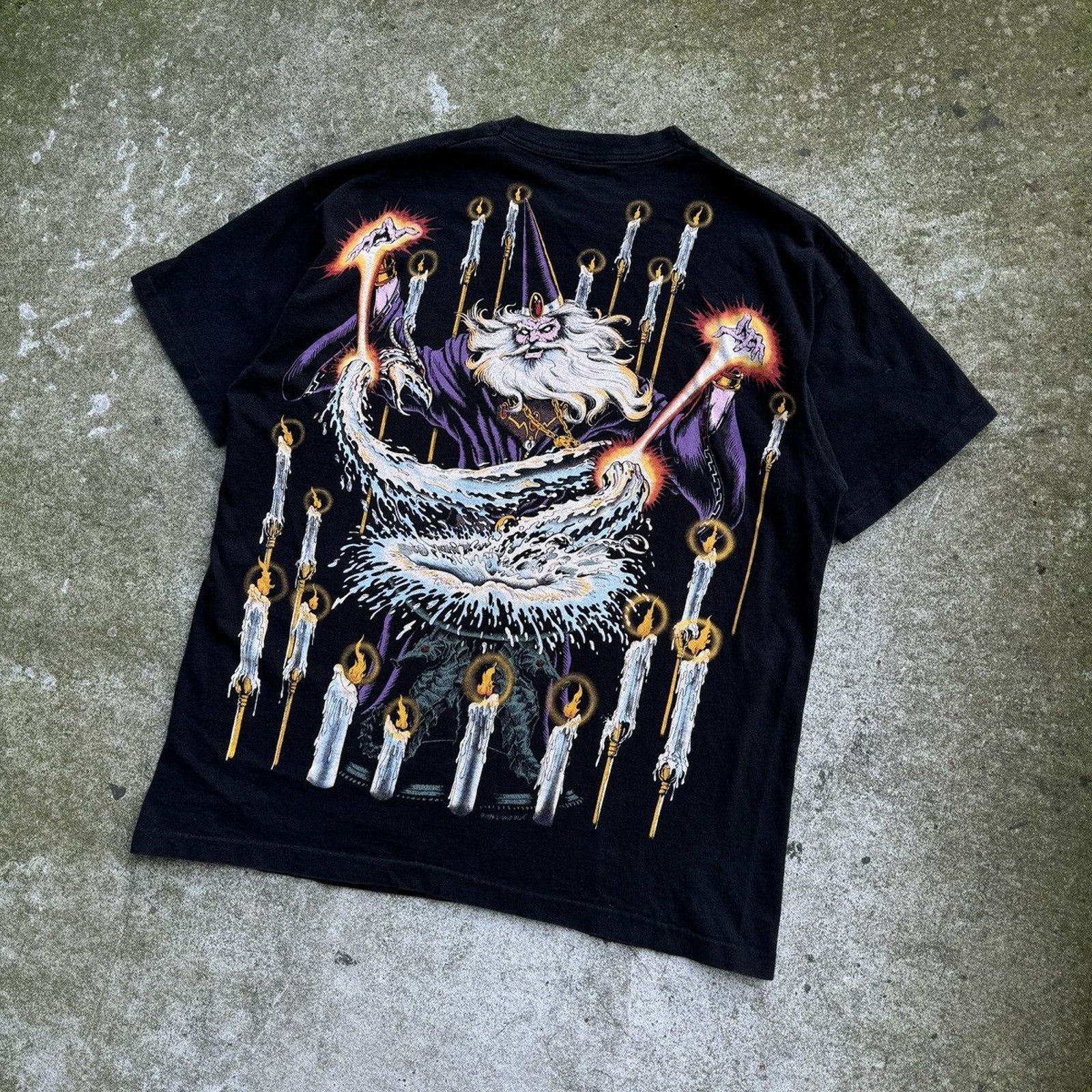Our sizing is determined by the measurements taken by hand, rather than the tagged size on the garment. Many items, especially with vintage clothing, generally measures different than the tagged size on the article itself. A standard size large tee shirt from decades ago generally fits different than a standard size large in modern sizing, due to changes in manufacturing standards, different practices by brand, shrinkage, aging, varying fabrics & materials, etc.